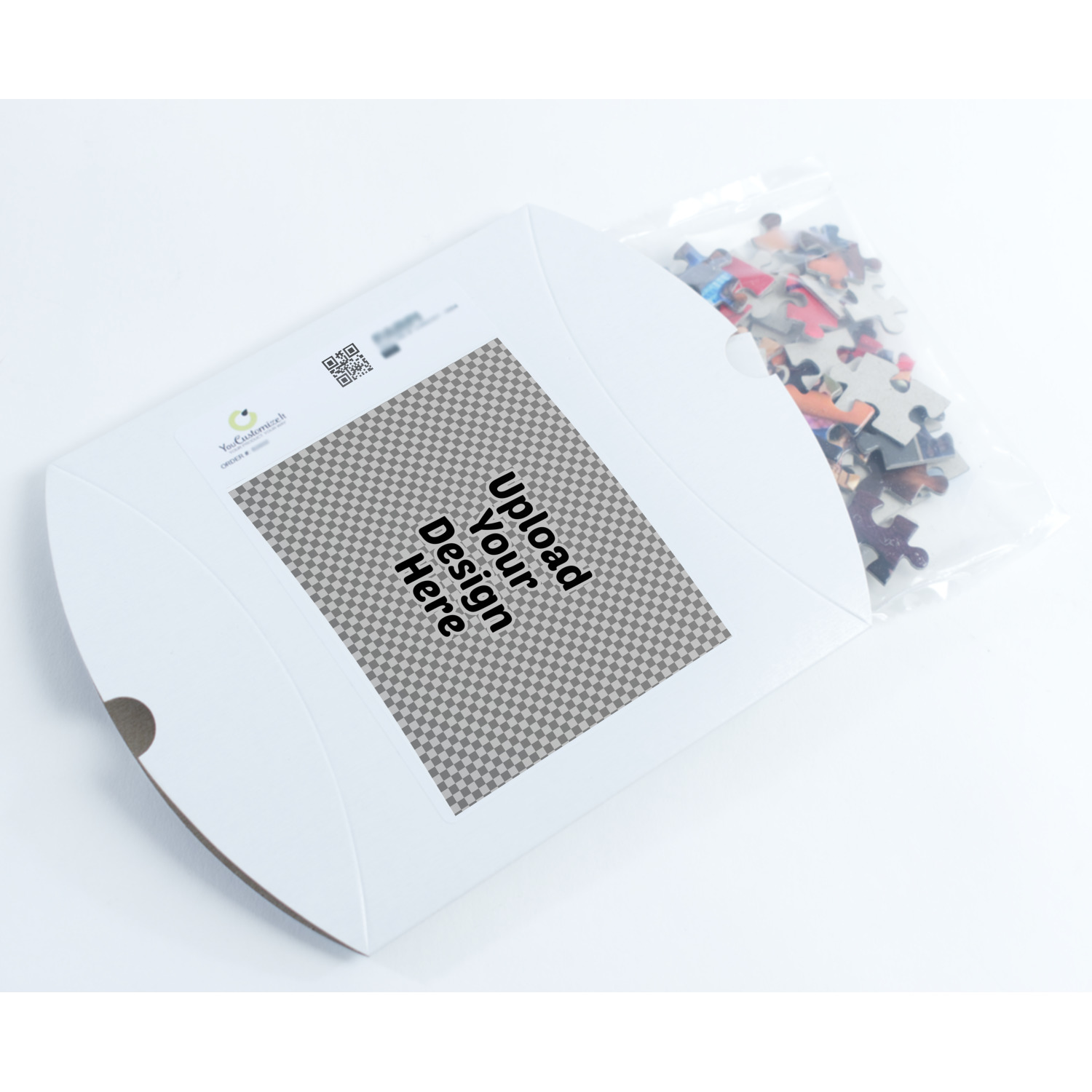 You can also upload your logo or art that you or your kids drew. To create more challenging jigsaw puzzles, you can create a pattern from with your logo or artwork. You can also add other elements such as text or personalization.