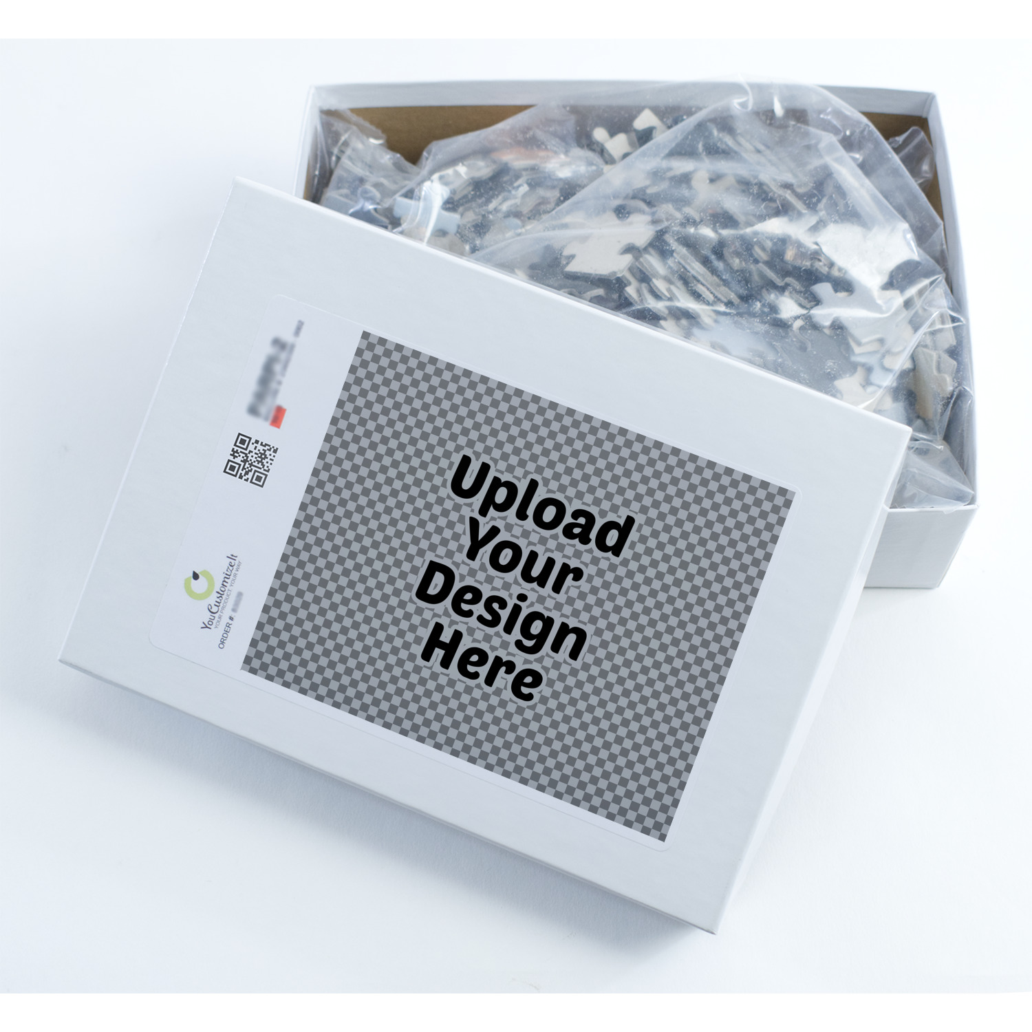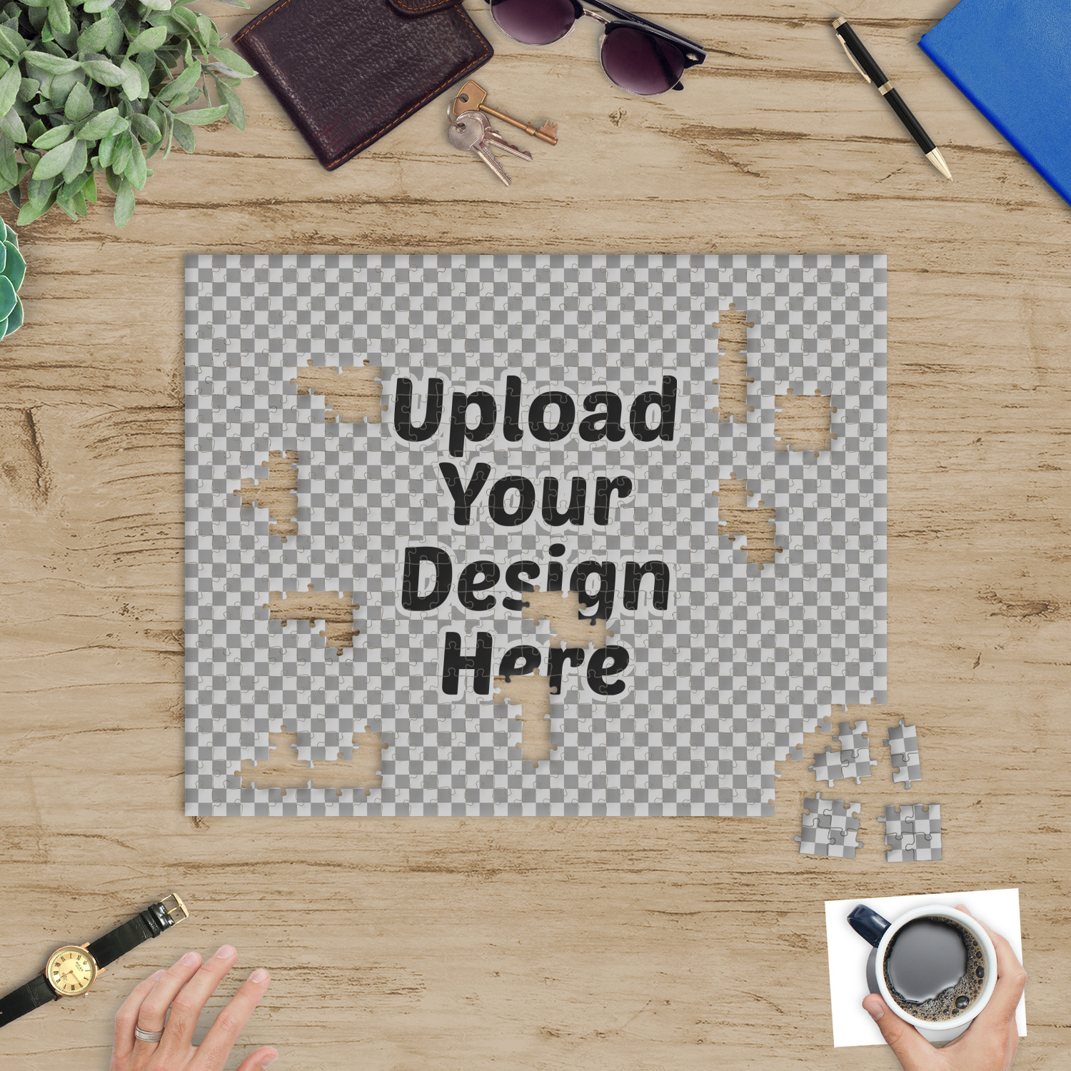 You can also upload your logo or art that you or your kids drew. To create more challenging jigsaw puzzles, you can create a pattern from with your logo or artwork. You can also add other elements such as text or personalization.