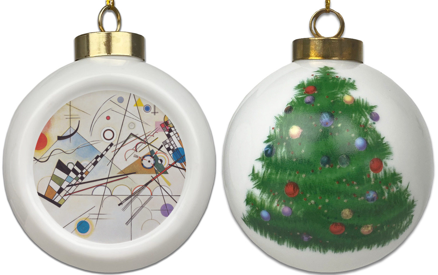 Our Christmas ornaments are a unique ceramic ball shape with a twist as it has a flat face to display your custom design! Select from one of our two design types - Christmas Tree or Poinsettia Garland - to adorn the curved back of your personal design. Each ornament measures 3H x 2.5W x 2D accompanied with a gold string accent for finishing touches to hang on your beautiful Christmas tree!