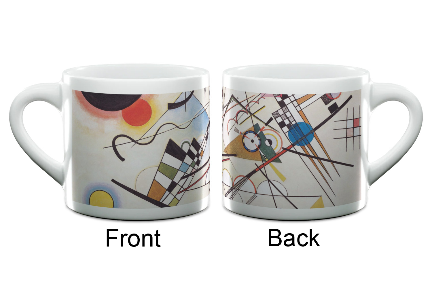 Each of our espresso mugs is a ceramic material sure to keep your drink warm. Personalize one cup for yourself, or order a set of 4! Its the perfect little gift for any coffee lover! We carry two sizes for you to personalize - 3 oz. (approx. 3.25" x 2.325" x 2.625") or 6 oz. (approx. 4" x 2.9" x 2.9"). Our 3 oz. mug is perfect for that single shot espresso while our 6 oz. mug can be your next favorite cappuccino cup holding two shots of espresso!