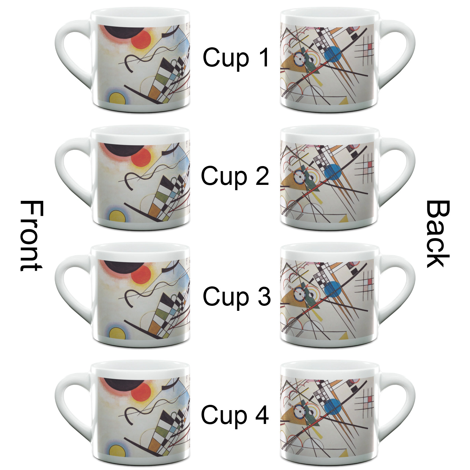 Each of our espresso mugs is a ceramic material sure to keep your drink warm. Personalize one cup for yourself, or order a set of 4! Its the perfect little gift for any coffee lover! We carry two sizes for you to personalize - 3 oz. (approx. 3.25" x 2.325" x 2.625") or 6 oz. (approx. 4" x 2.9" x 2.9"). Our 3 oz. mug is perfect for that single shot espresso while our 6 oz. mug can be your next favorite cappuccino cup holding two shots of espresso!
