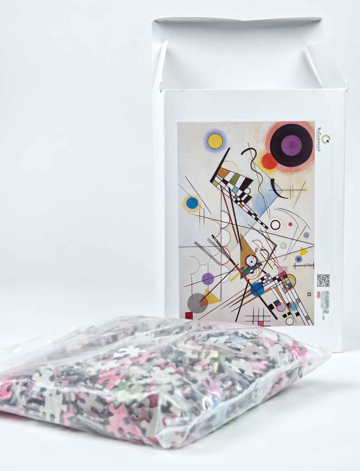 We print our puzzles on thick white chipboard in vibrant colors, then laminate the chipboard and die cut your puzzle. Your jigsaw puzzle is shipped to you in a box with the image of the puzzle on the box.