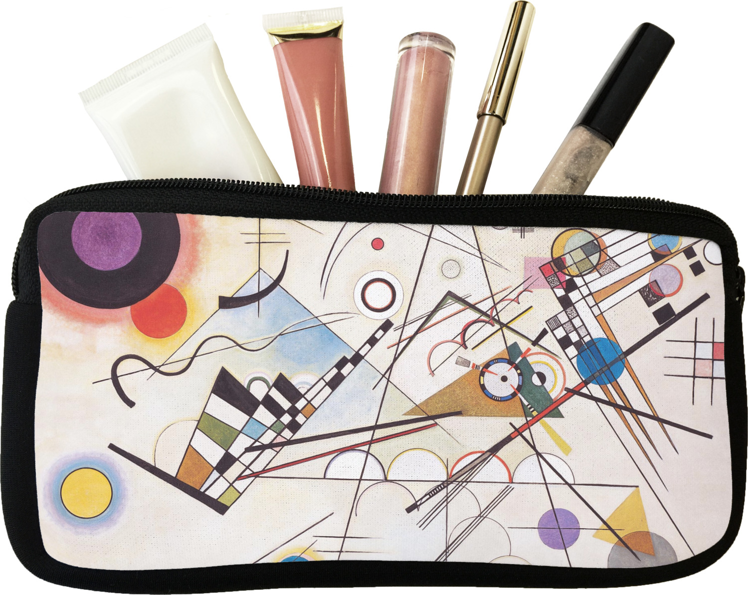 Our personalized makeup bags are available in many different designs, patterns and colors - so you are sure to find one that will love. They are made of neoprene (same material as wet-suits) and thus are water resistant, so spillages in your makeup bag will not end up all over you purse. They are customized on one side and are black on the other side and the zipper is black as well.