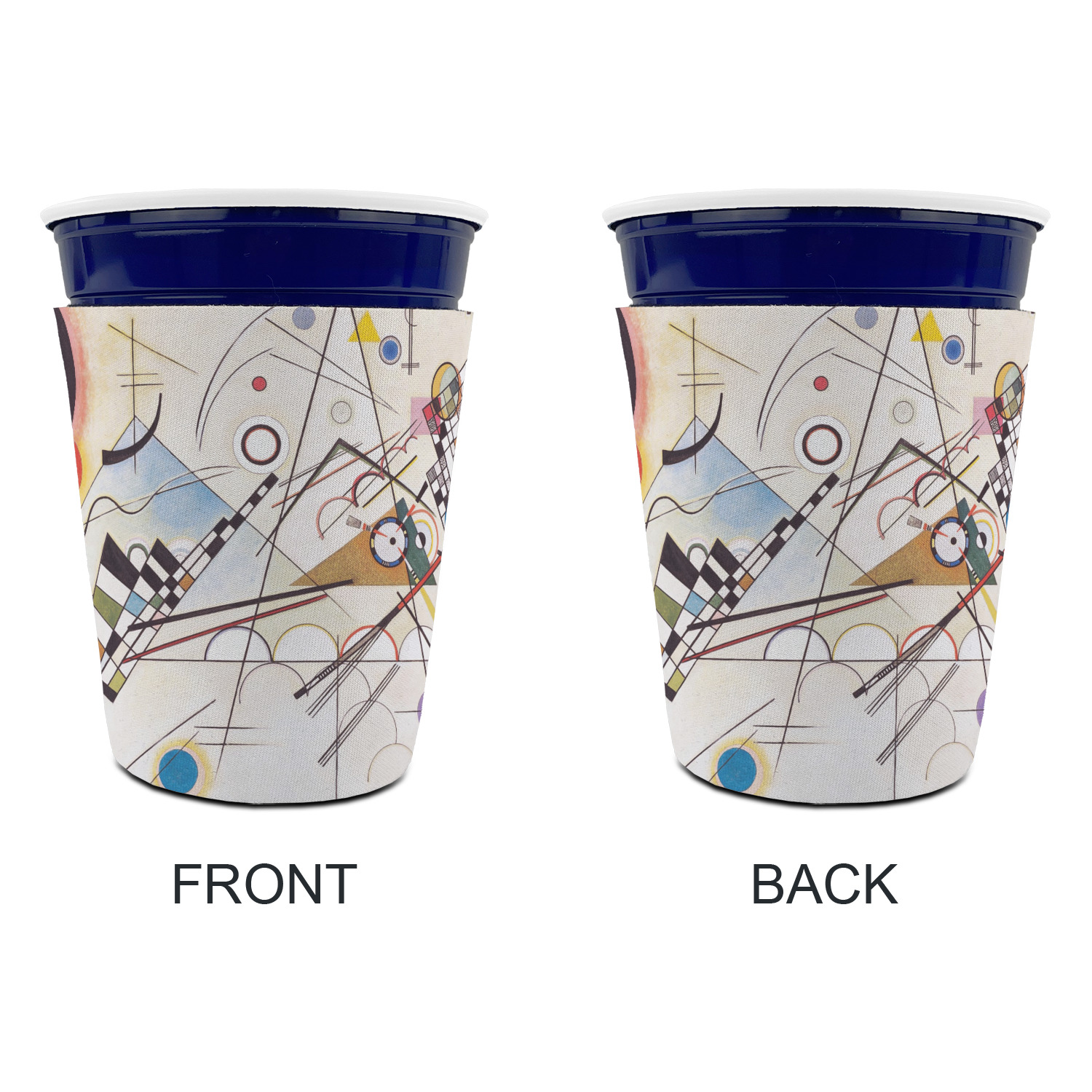 Made from neoprene with a polyester outer fabric and sewn seams, these premium quality party cup sleeves are very durable and will hold up to heavy use. They are available in 2 styles - with a bottom or just a sleeve to go around the outside of the tapered cup. The sleeve covers are about 4" tall and cover about 90% of the classic 16 oz. Solo cup.