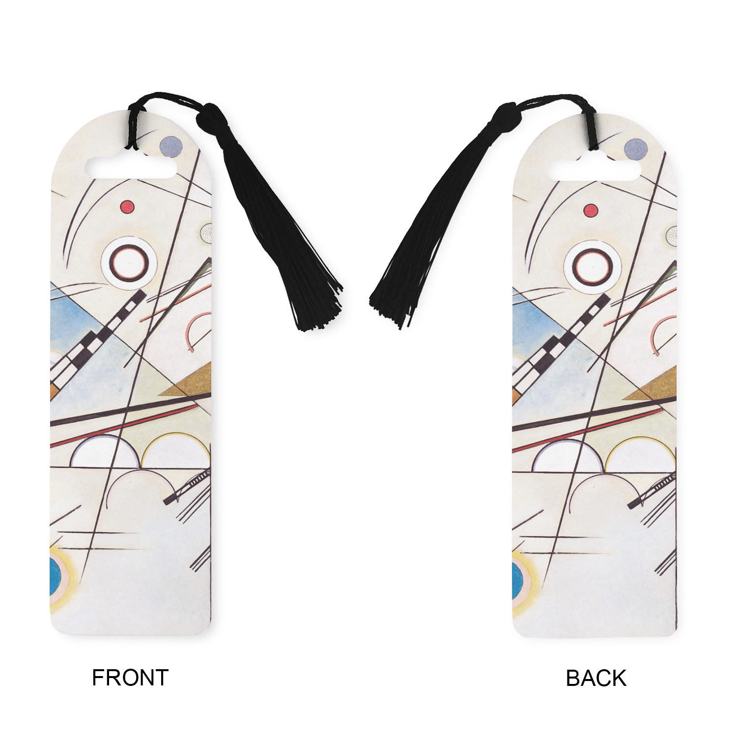 Made from a durable, flexible plastic, these bookmarks are printed with your custom design on them. With the tassel on them they make it easy to find your page in your book. These are a rectangular shape 7 1/4 inches tall with a rounded top and are approximately 2 1/4 inches wide.