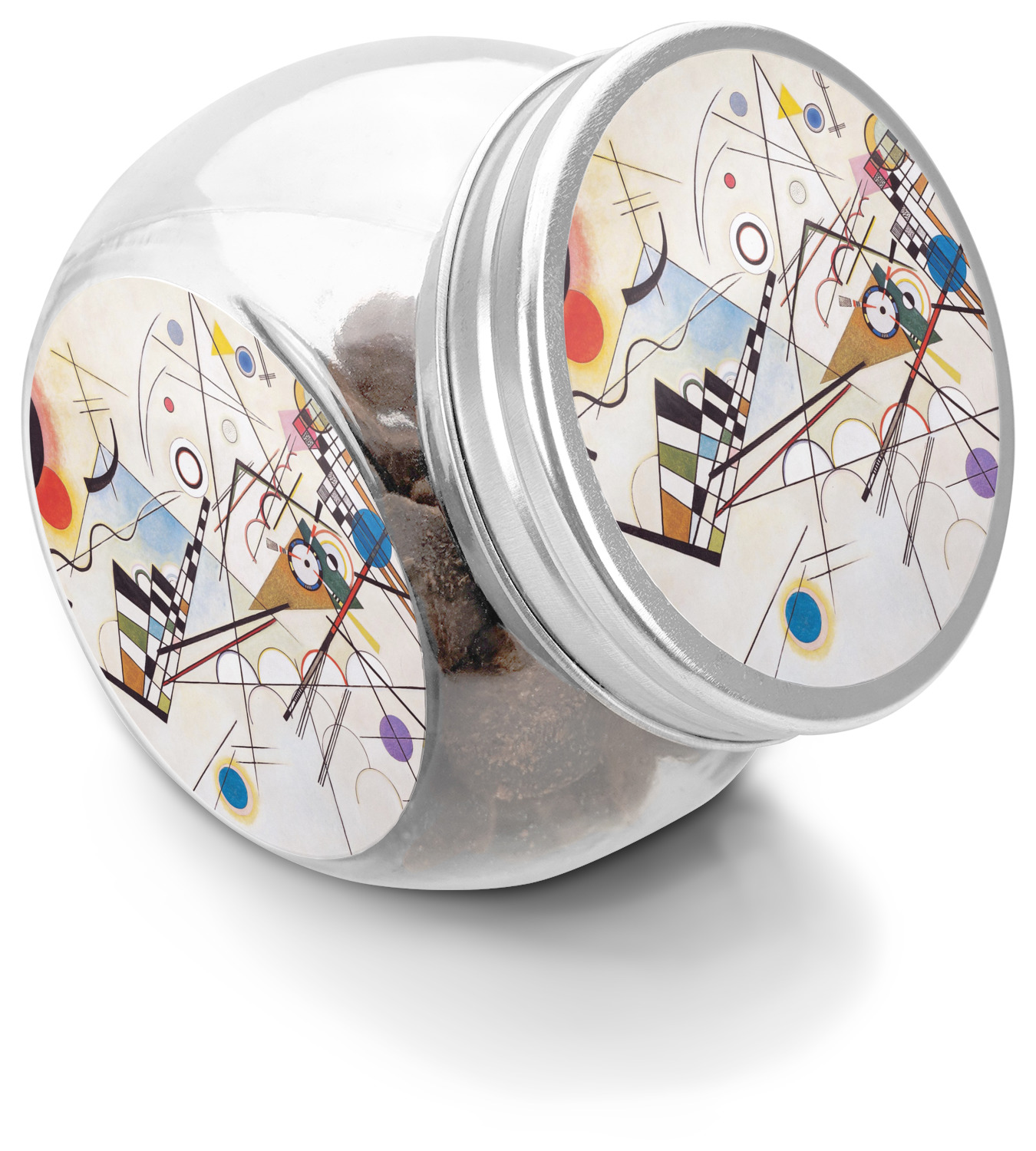 This treat jar is an excellent way to store treats for your favorite canine or feline. Moreover, their delicate, classy appearance makes them a tasteful addition to your countertop's décor. Crafted from clear glass, its unique construction and silver metal, screw-on lid allows for quick and easy access. Three, permanent, vinyl stickers are applied to both sides of the jar and lid, presenting your personalized design. The base of this glass, dog treat jar is 3.4" x 4.75", and the jar stands at 5" tall. Though on the smaller side, this jar is best suited for smaller treats or training treats.