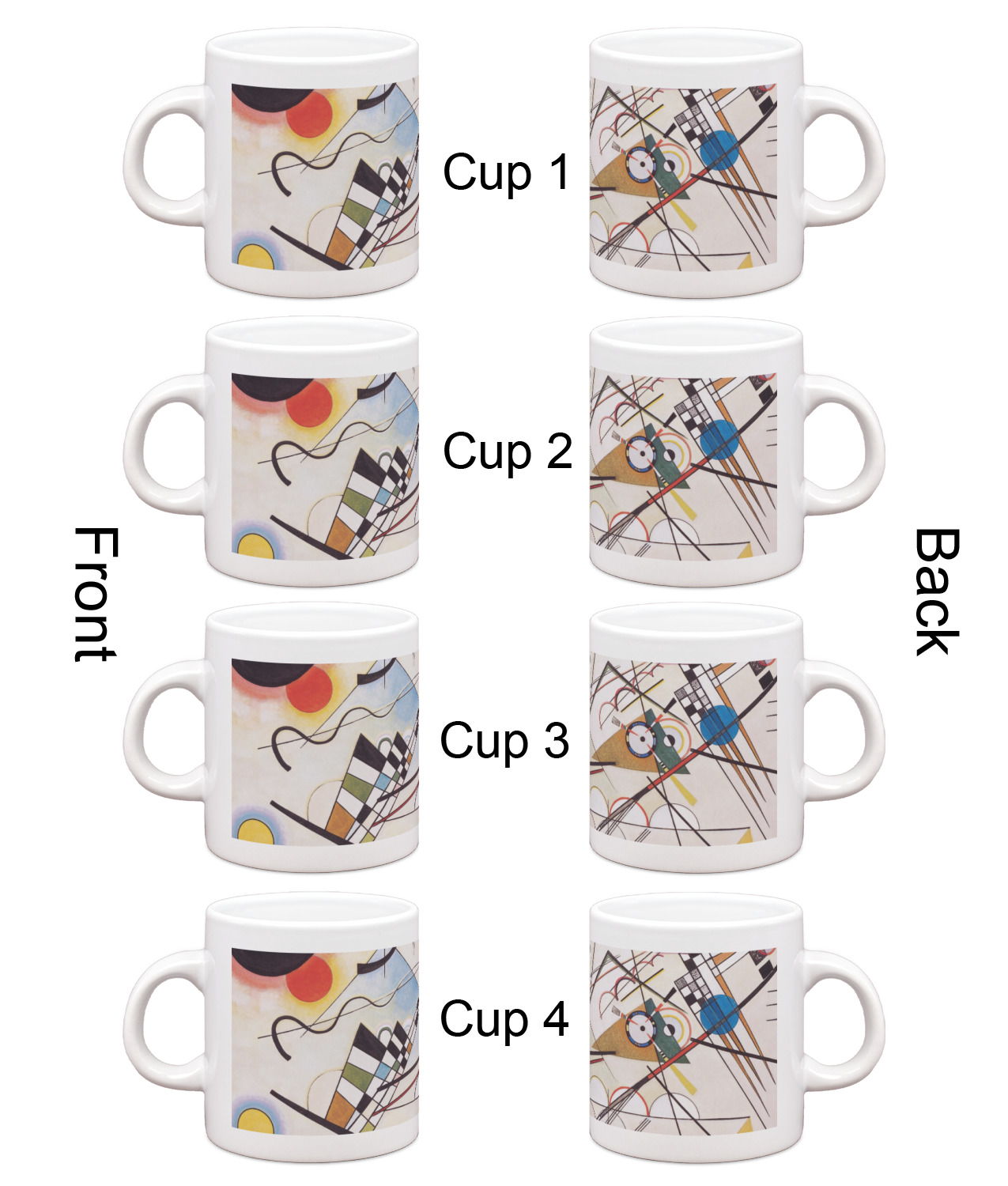Each of our espresso mugs is a ceramic material sure to keep your drink warm. Personalize one cup for yourself, or order a set of 4! Its the perfect little gift for any coffee lover! We carry two sizes for you to personalize - 3 oz. (approx. 3.25" x 2.325" x 2.625") or 6 oz. (approx. 4" x 2.9" x 2.9"). Our 3 oz. mug is perfect for that single shot espresso while our 6 oz. mug can be your next favorite cappuccino cup holding two shots of espresso!