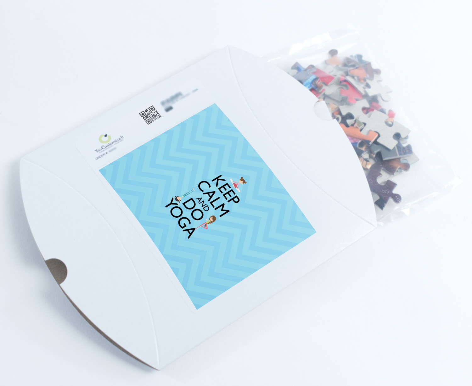 You can also upload your logo or art that you or your kids drew. To create more challenging jigsaw puzzles, you can create a pattern from with your logo or artwork. You can also add other elements such as text or personalization.