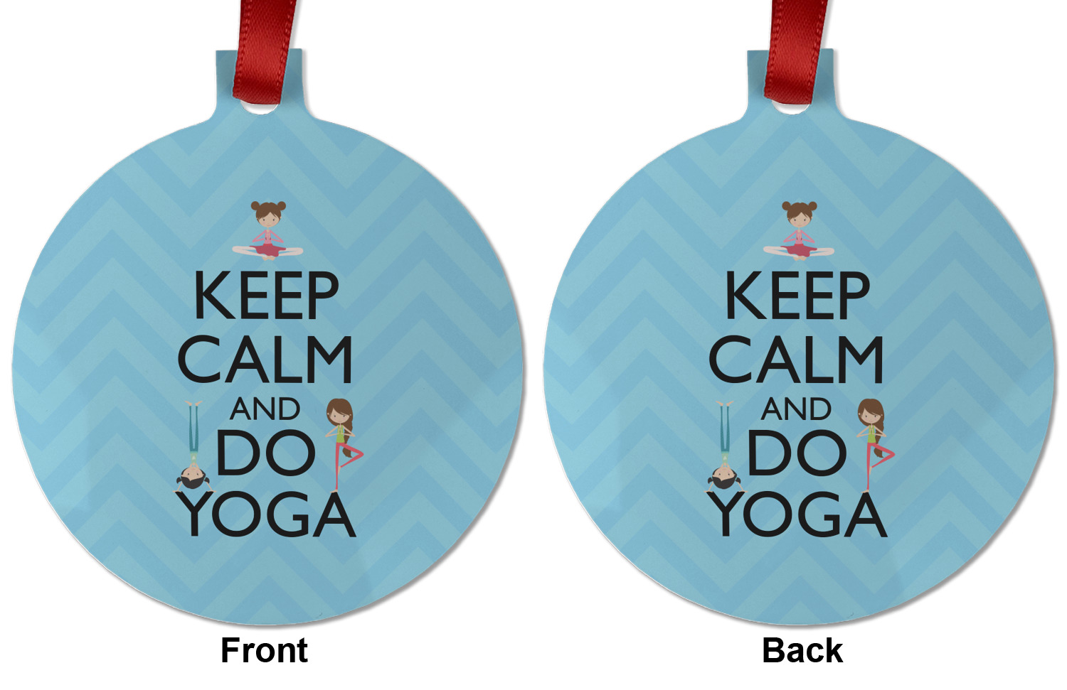 This beautiful design is a combination of the classic chevron print along with the popular saying, "Keep Calm and Do Yoga." How long can you balance on one leg?
