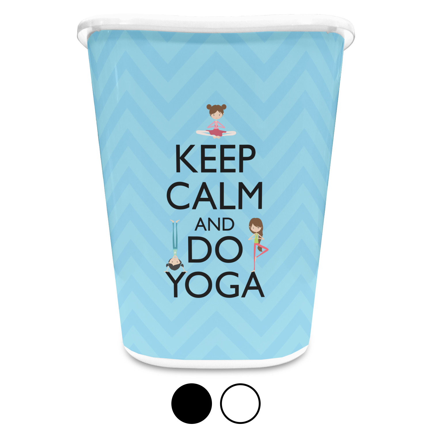 You can choose to purchase these decorative wastebaskets in either a white or a black color that will show on the base and the upper rim. Your customization is printed on a high-gloss, fine-quality vinyl adhesive, and you can choose to either have this adhesive applied to one side only or to both sides. As such, this plastic wastebasket can be single-sided or double-sided, depending on your creative vision. Your customization is printed using durable inks, making the design waterproof and resistant to fading over time.