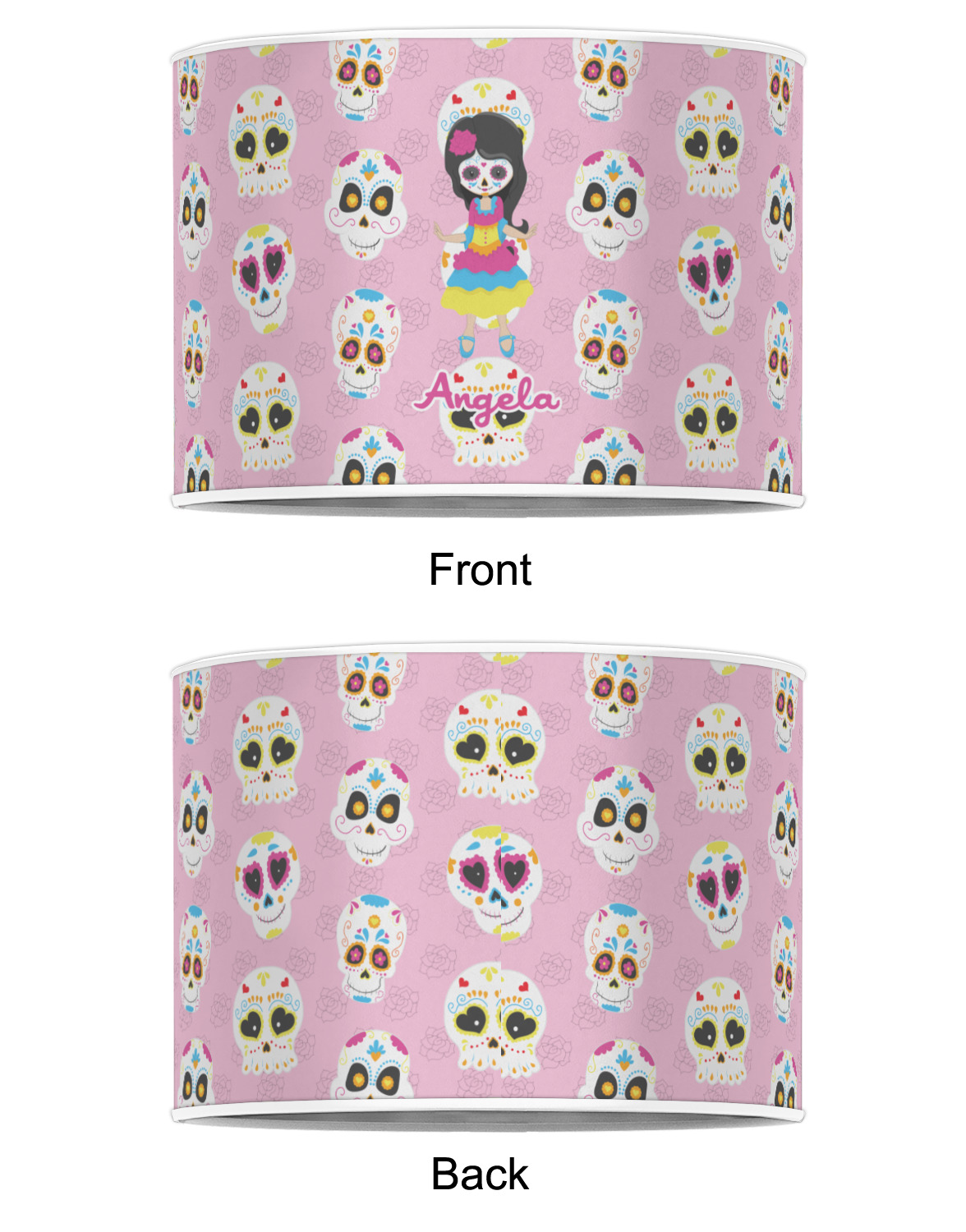 Most sugar skull design are only suitable for adults - not this one! This sugar skulls designs was done especially for kids who love sugar skulls. This is another one of our many layered designs where the background is a coordinating floral pattern; with kid friendly sugar skulls on top. We then topped it off with our girl who has her face painted. For personalization, we added her name to the bottom.
