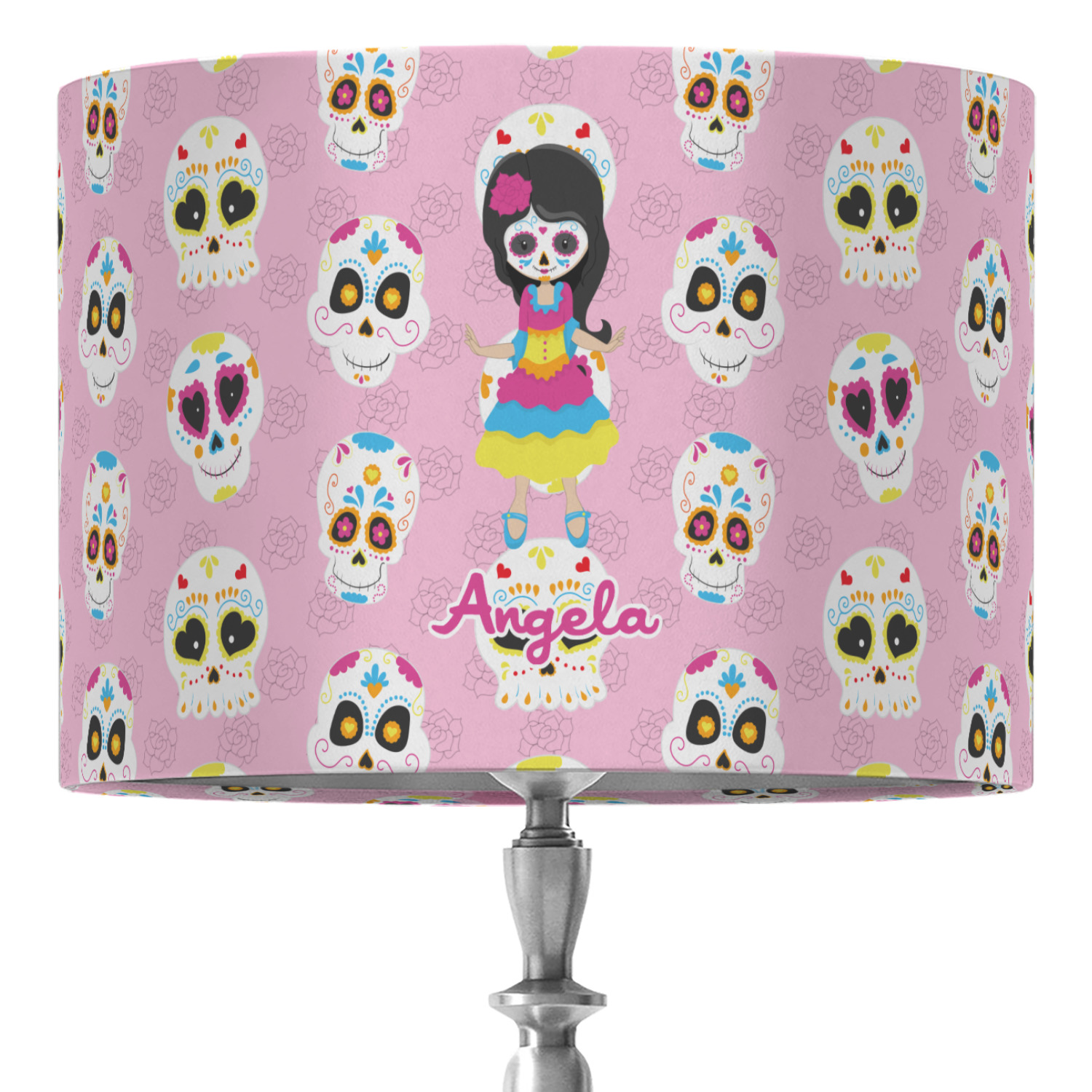 Most sugar skull design are only suitable for adults - not this one! This sugar skulls designs was done especially for kids who love sugar skulls. This is another one of our many layered designs where the background is a coordinating floral pattern; with kid friendly sugar skulls on top. We then topped it off with our girl who has her face painted. For personalization, we added her name to the bottom.