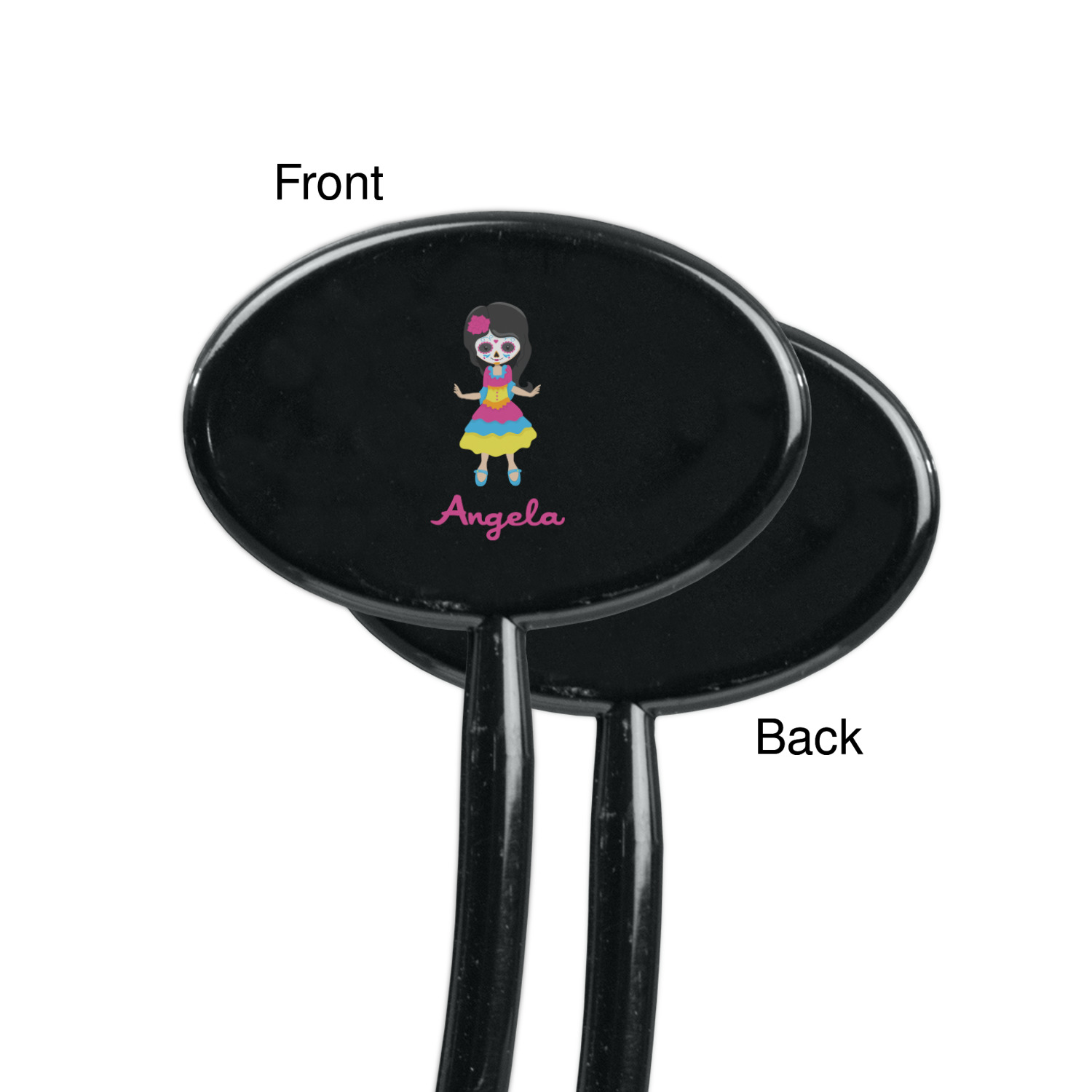 Most sugar skull design are only suitable for adults - not this one! This sugar skulls designs was done especially for kids who love sugar skulls. This is another one of our many layered designs where the background is a coordinating floral pattern; with kid friendly sugar skulls on top. We then topped it off with our girl who has her face painted. For personalization, we added her name to the bottom.