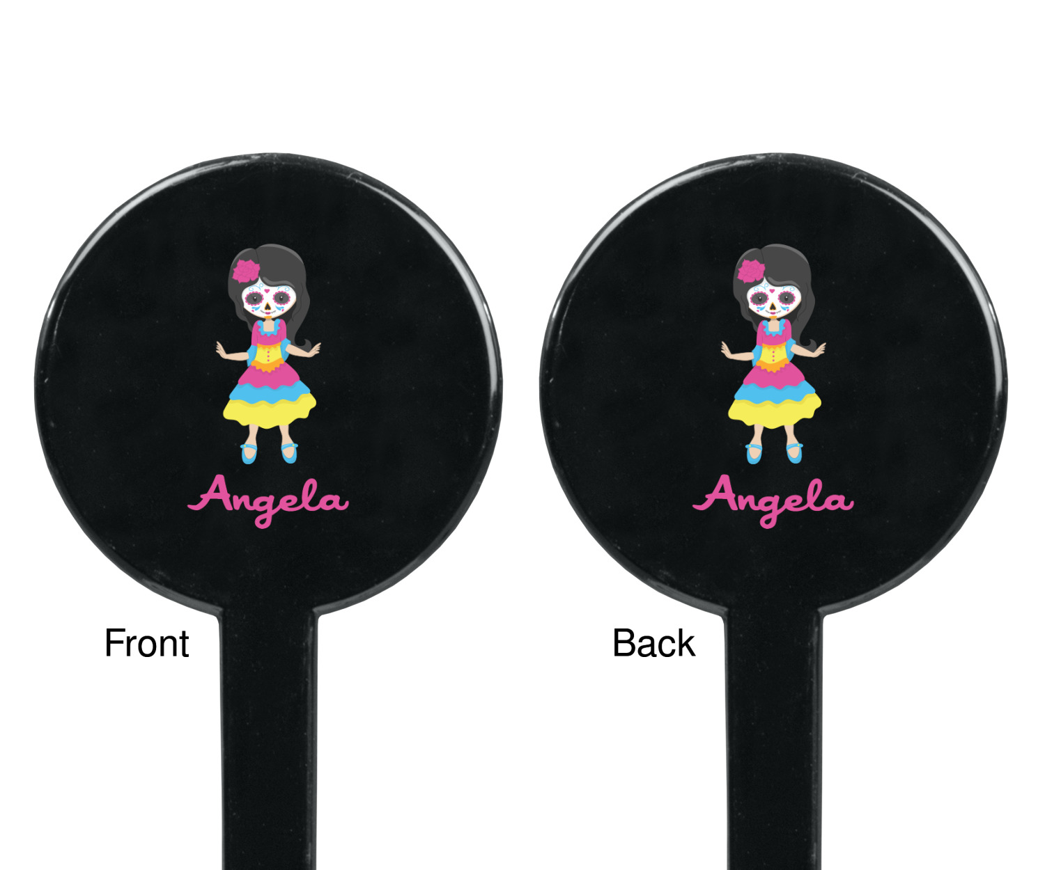 Most sugar skull design are only suitable for adults - not this one! This sugar skulls designs was done especially for kids who love sugar skulls. This is another one of our many layered designs where the background is a coordinating floral pattern; with kid friendly sugar skulls on top. We then topped it off with our girl who has her face painted. For personalization, we added her name to the bottom.