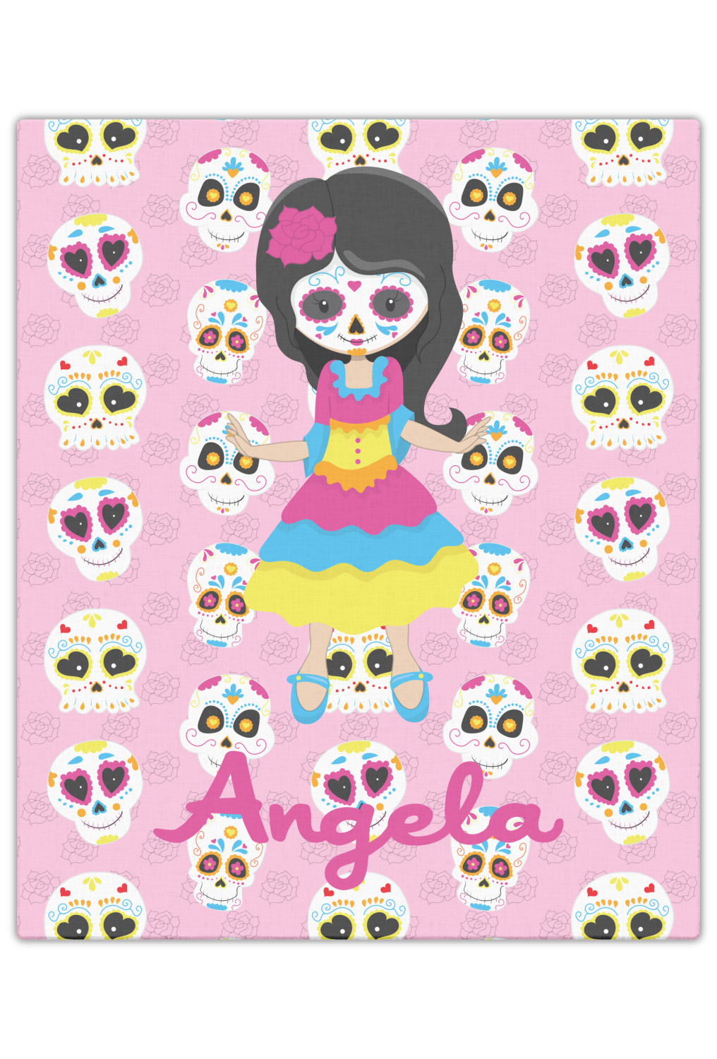 Most sugar skull design are only suitable for adults - not this one! This sugar skulls designs was done especially for kids who love sugar skulls. This is another one of our many layered designs where the background is a coordinating floral pattern; with kid friendly sugar skulls on top. We then topped it off with our girl who has her face painted. For personalization, we added her name to the bottom.