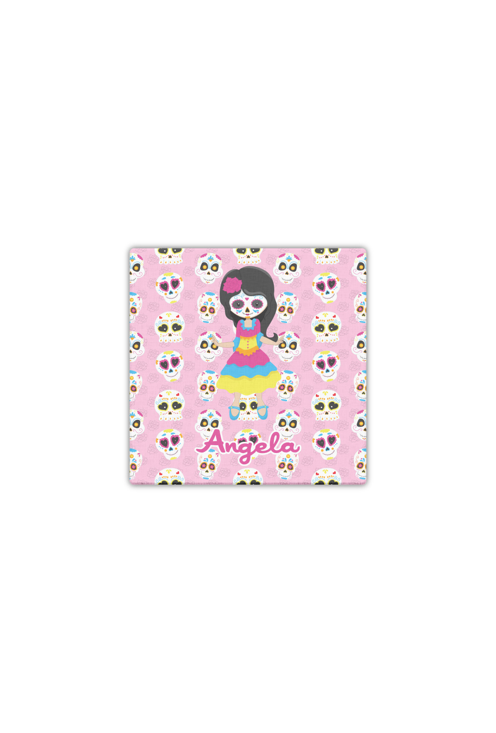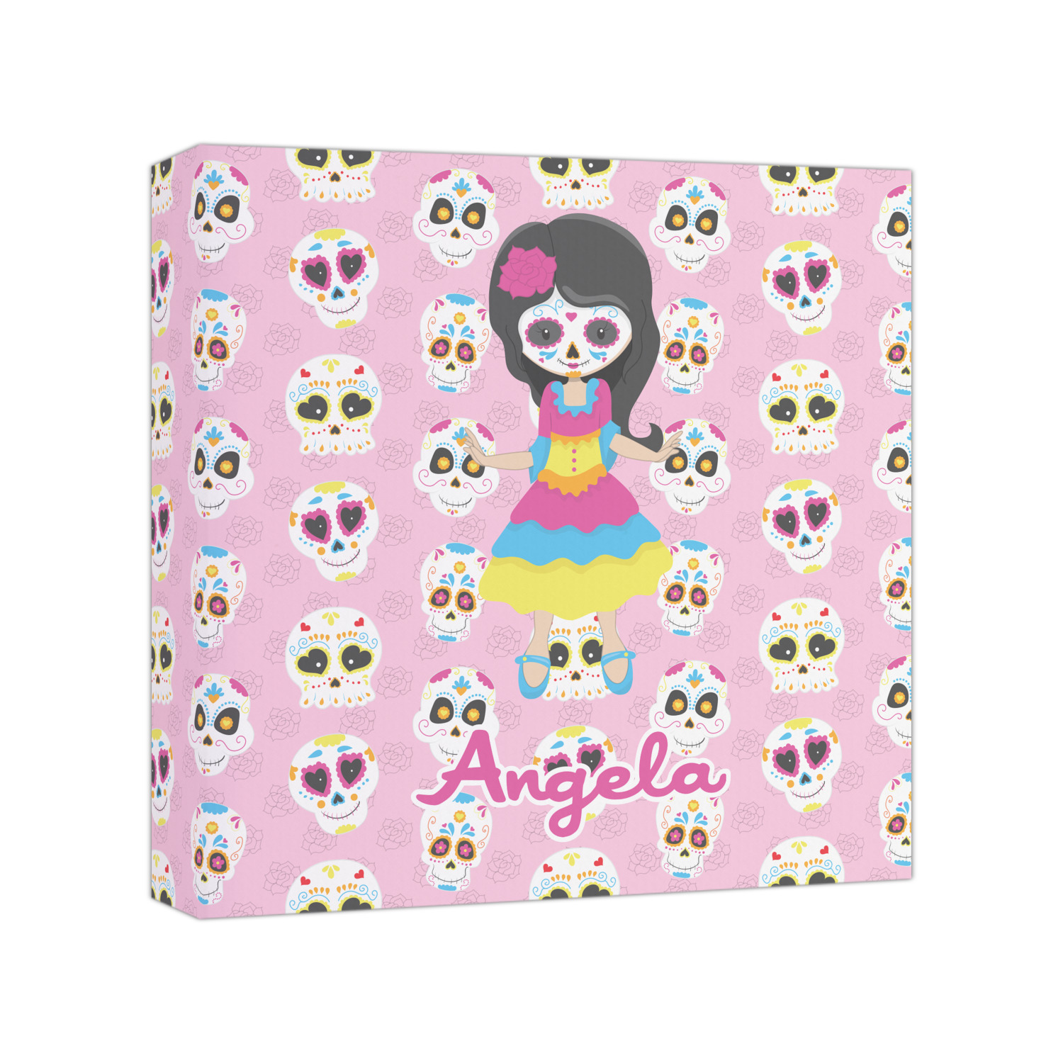 Most sugar skull design are only suitable for adults - not this one! This sugar skulls designs was done especially for kids who love sugar skulls. This is another one of our many layered designs where the background is a coordinating floral pattern; with kid friendly sugar skulls on top. We then topped it off with our girl who has her face painted. For personalization, we added her name to the bottom.