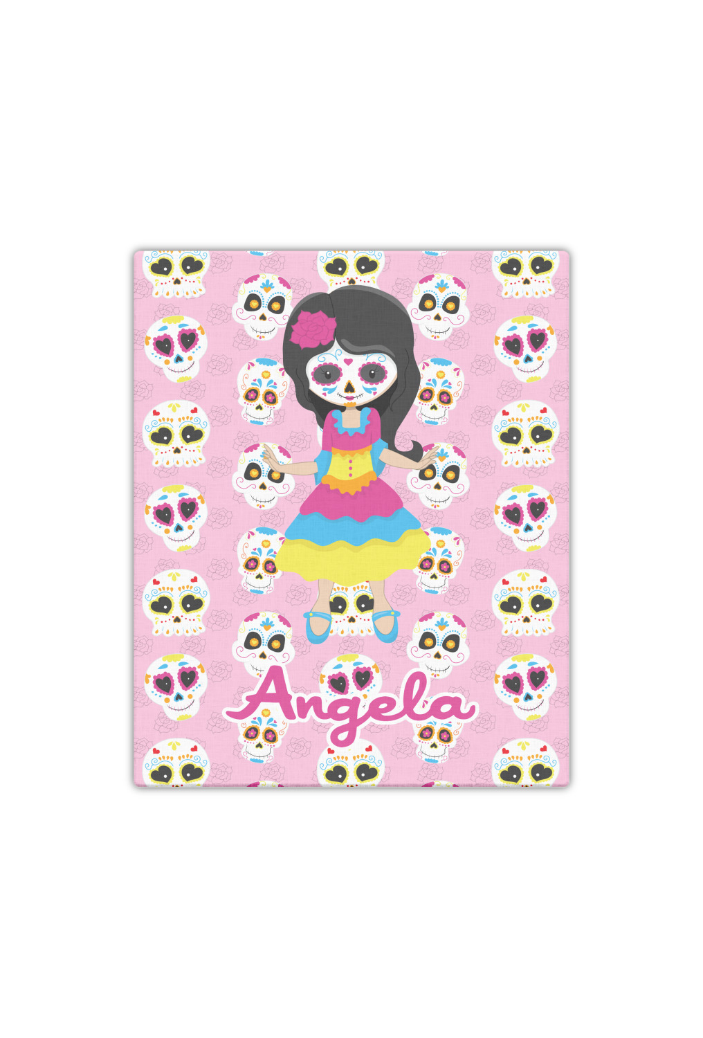 Most sugar skull design are only suitable for adults - not this one! This sugar skulls designs was done especially for kids who love sugar skulls. This is another one of our many layered designs where the background is a coordinating floral pattern; with kid friendly sugar skulls on top. We then topped it off with our girl who has her face painted. For personalization, we added her name to the bottom.