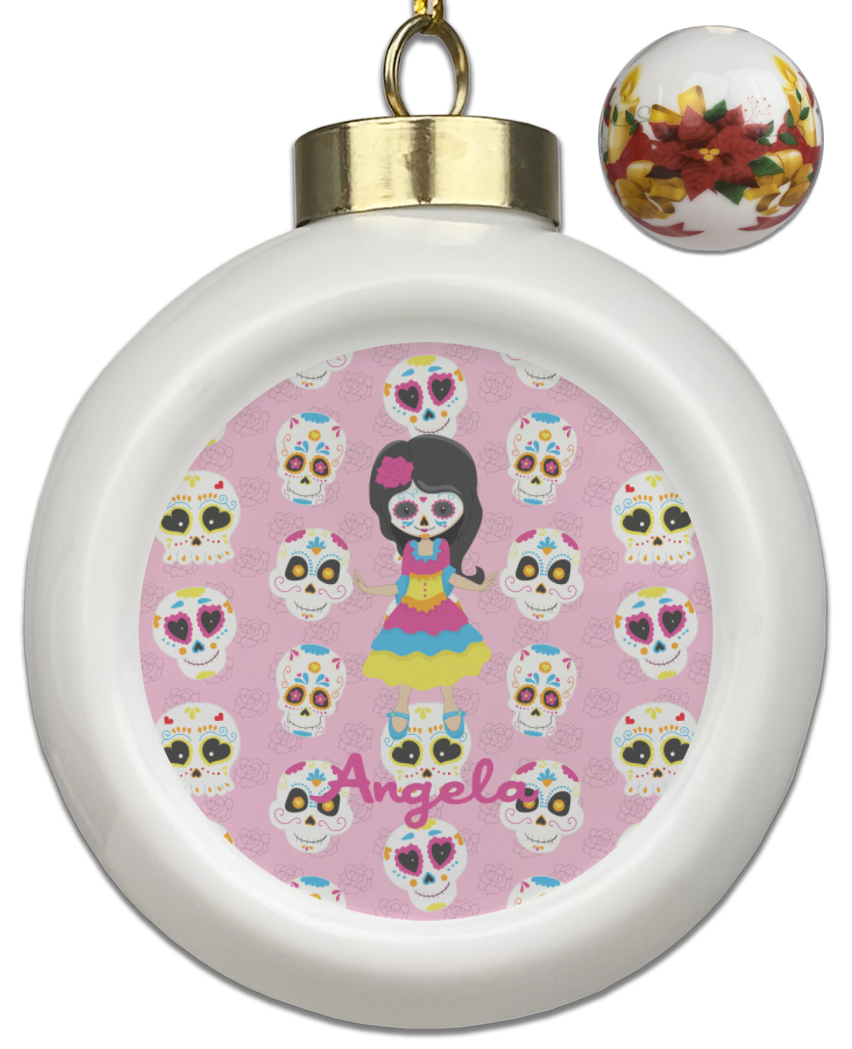 Our Christmas ornaments are a unique ceramic ball shape with a twist as it has a flat face to display your custom design! Select from one of our two design types - Christmas Tree or Poinsettia Garland - to adorn the curved back of your personal design. Each ornament measures 3H x 2.5W x 2D accompanied with a gold string accent for finishing touches to hang on your beautiful Christmas tree!