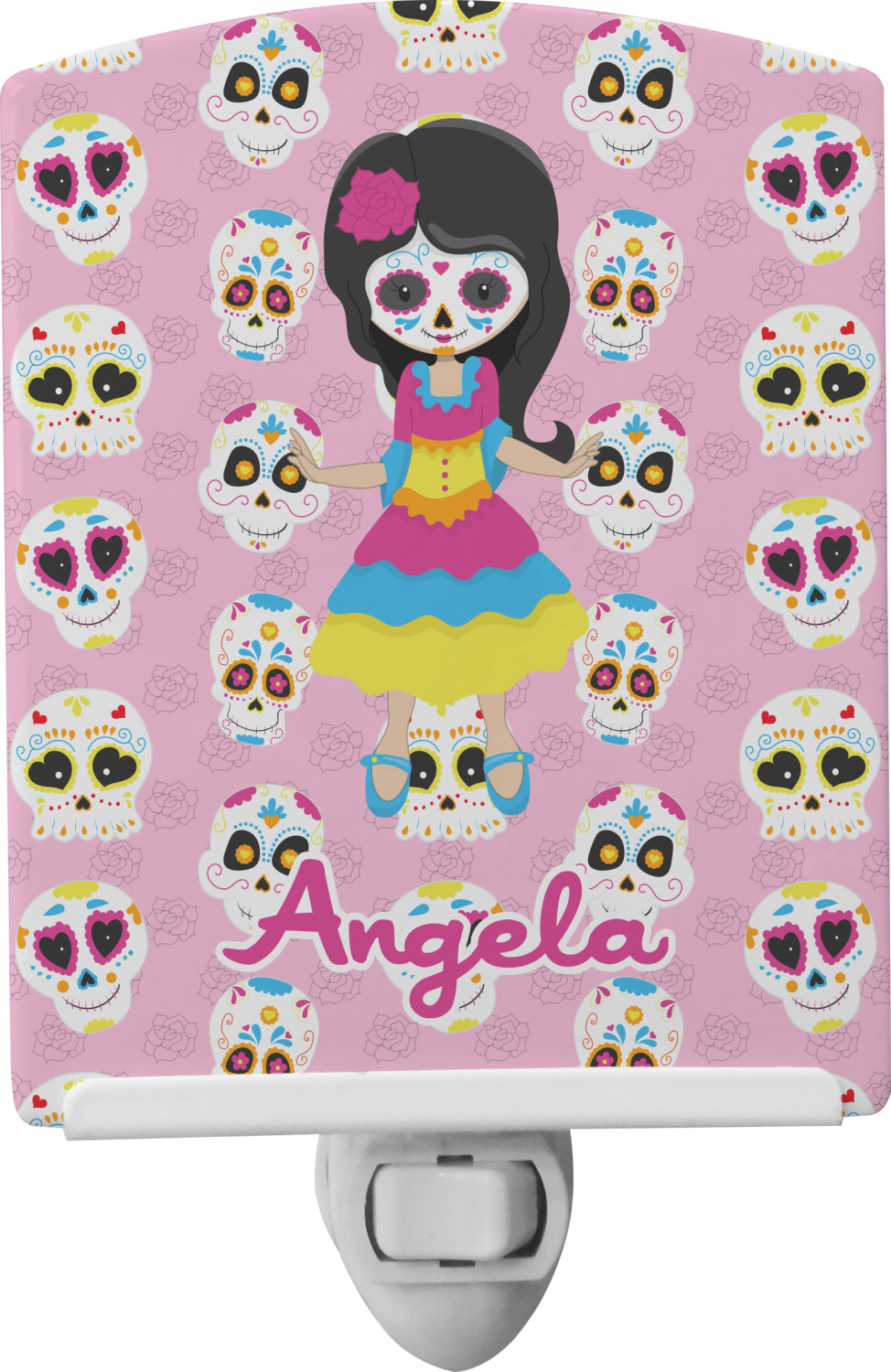 Most sugar skull design are only suitable for adults - not this one! This sugar skulls designs was done especially for kids who love sugar skulls. This is another one of our many layered designs where the background is a coordinating floral pattern; with kid friendly sugar skulls on top. We then topped it off with our girl who has her face painted. For personalization, we added her name to the bottom.