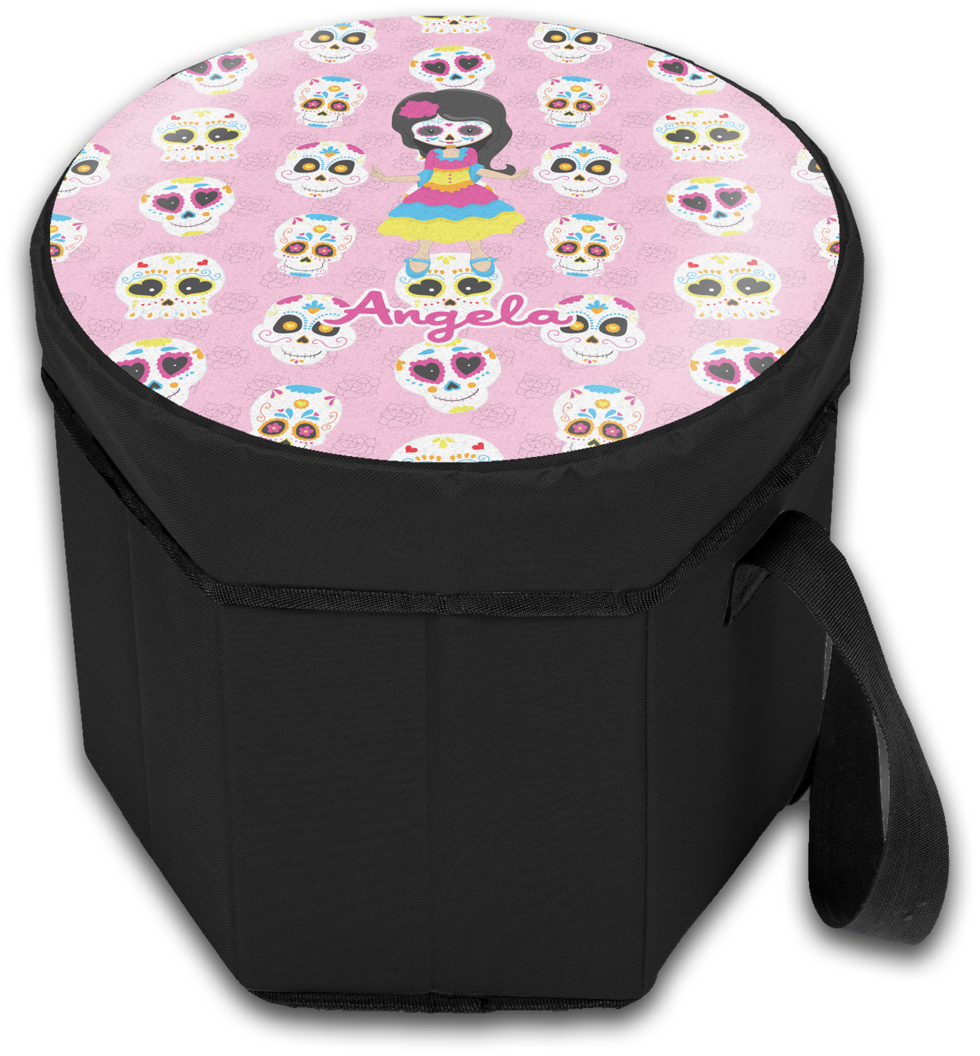 Our collapsible insulated coolers feature a unique six-sided hexagon shape, are lightweight, durable and can be turned into a seat. This cooler is fully insulated with silver foil lining to keep food and drinks hot or cold, and has a 12-quart capacity. Although this cooler collapses for easy transport, hidden inside are composition panels made of sturdy wood that give the frame strength and allow this cooler to be used as a seat. Simply sit down on the personalized cover and give your legs a break! (Maximum weight capacity of 200 pounds.)