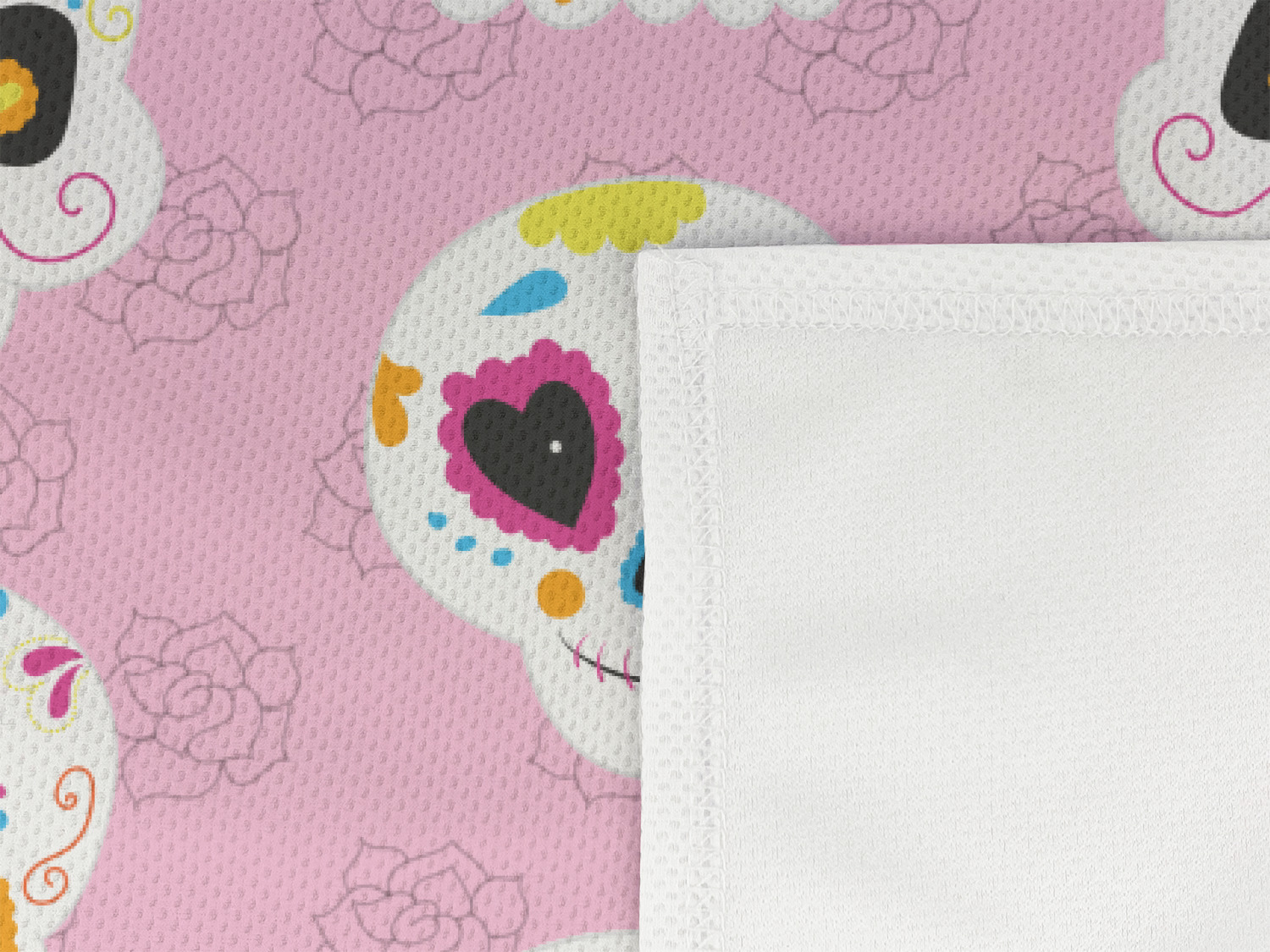 Most sugar skull design are only suitable for adults - not this one! This sugar skulls designs was done especially for kids who love sugar skulls. This is another one of our many layered designs where the background is a coordinating floral pattern; with kid friendly sugar skulls on top. We then topped it off with our girl who has her face painted. For personalization, we added her name to the bottom.