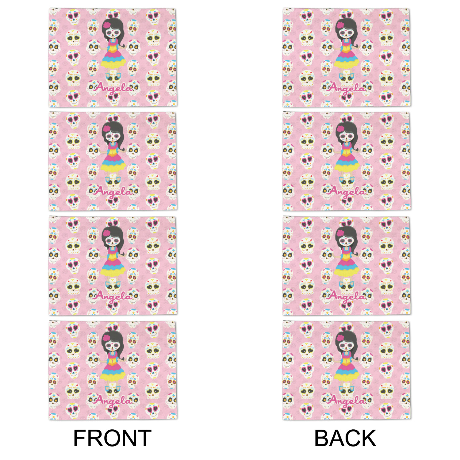 Most sugar skull design are only suitable for adults - not this one! This sugar skulls designs was done especially for kids who love sugar skulls. This is another one of our many layered designs where the background is a coordinating floral pattern; with kid friendly sugar skulls on top. We then topped it off with our girl who has her face painted. For personalization, we added her name to the bottom.