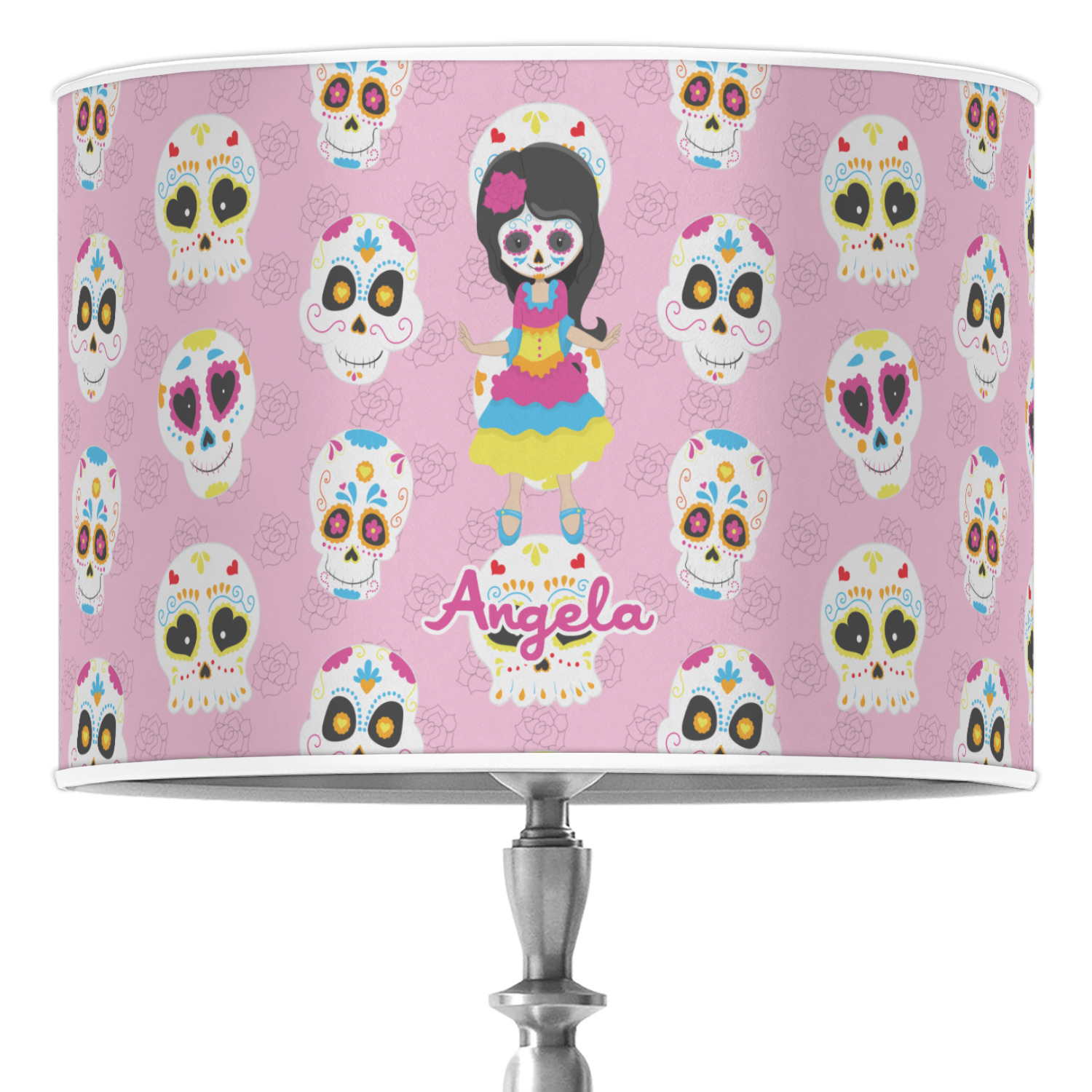 Most sugar skull design are only suitable for adults - not this one! This sugar skulls designs was done especially for kids who love sugar skulls. This is another one of our many layered designs where the background is a coordinating floral pattern; with kid friendly sugar skulls on top. We then topped it off with our girl who has her face painted. For personalization, we added her name to the bottom.