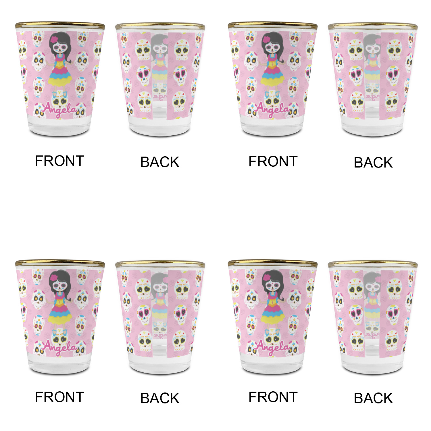 Made with frosted glass, these shot glasses are printed in full color with the design of your choice. They are a standard 1.5oz shot glass and are 2.4" tall. The print is wrapped around the shot glass in a full wrap and boldly displays your customization.