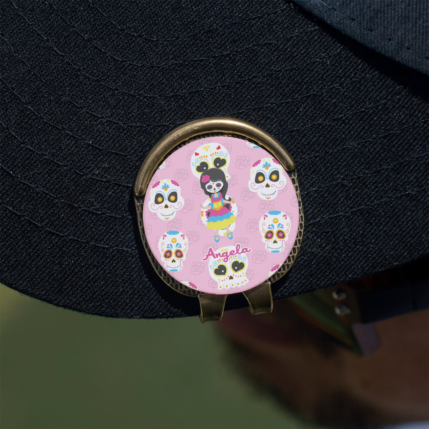 This round shaped little clip is simply 1.25" x 1.5". A clip wraps around to the back of the ball marker holder in order to be able to clip it to the bill of your hat or even your belt. The metal ball marker attaches by a magnet on the clip. Available in stainless steel natural finish or gold finish, you are sure to find one to suit your style. This makes for convenient removal when you need to use it. No more digging in your bag or pockets trying to find it!