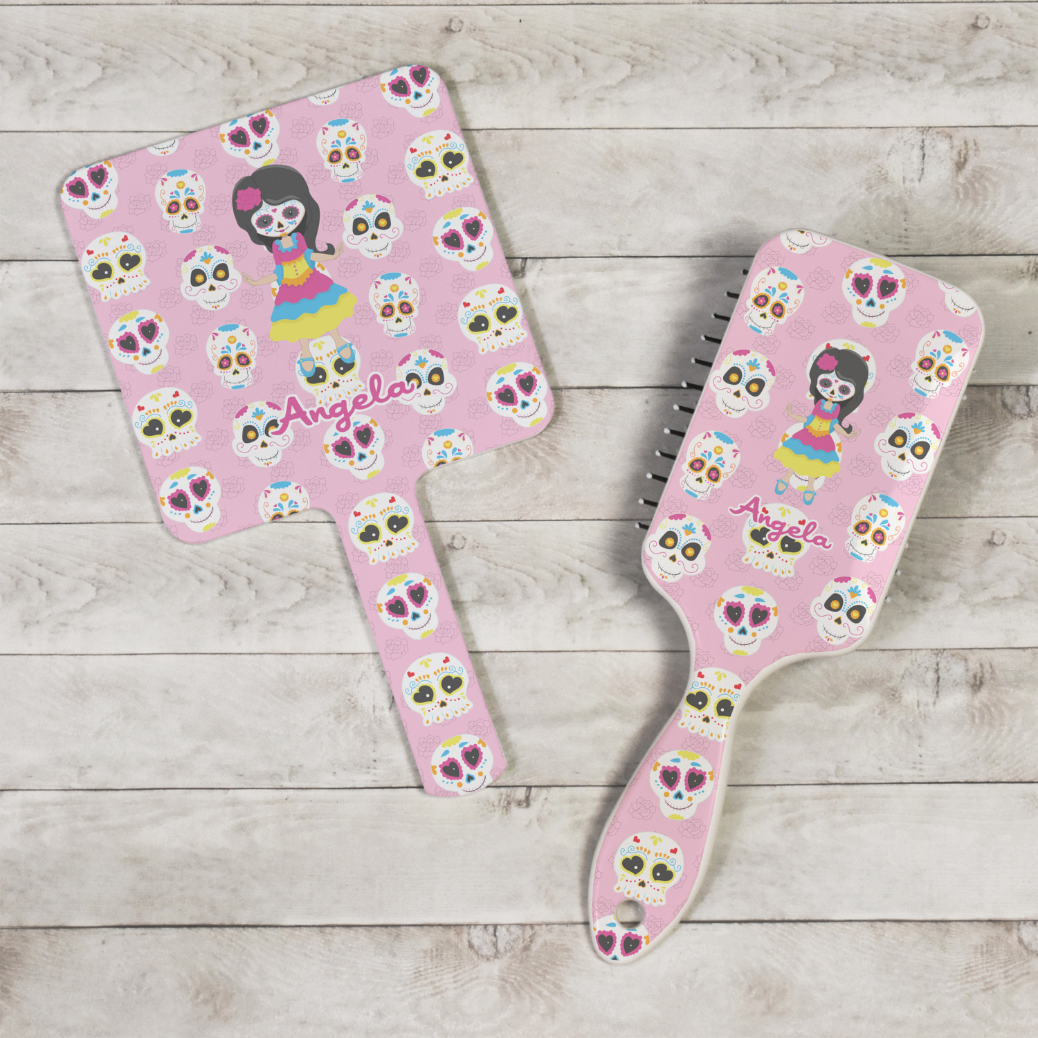 Most sugar skull design are only suitable for adults - not this one! This sugar skulls designs was done especially for kids who love sugar skulls. This is another one of our many layered designs where the background is a coordinating floral pattern; with kid friendly sugar skulls on top. We then topped it off with our girl who has her face painted. For personalization, we added her name to the bottom.