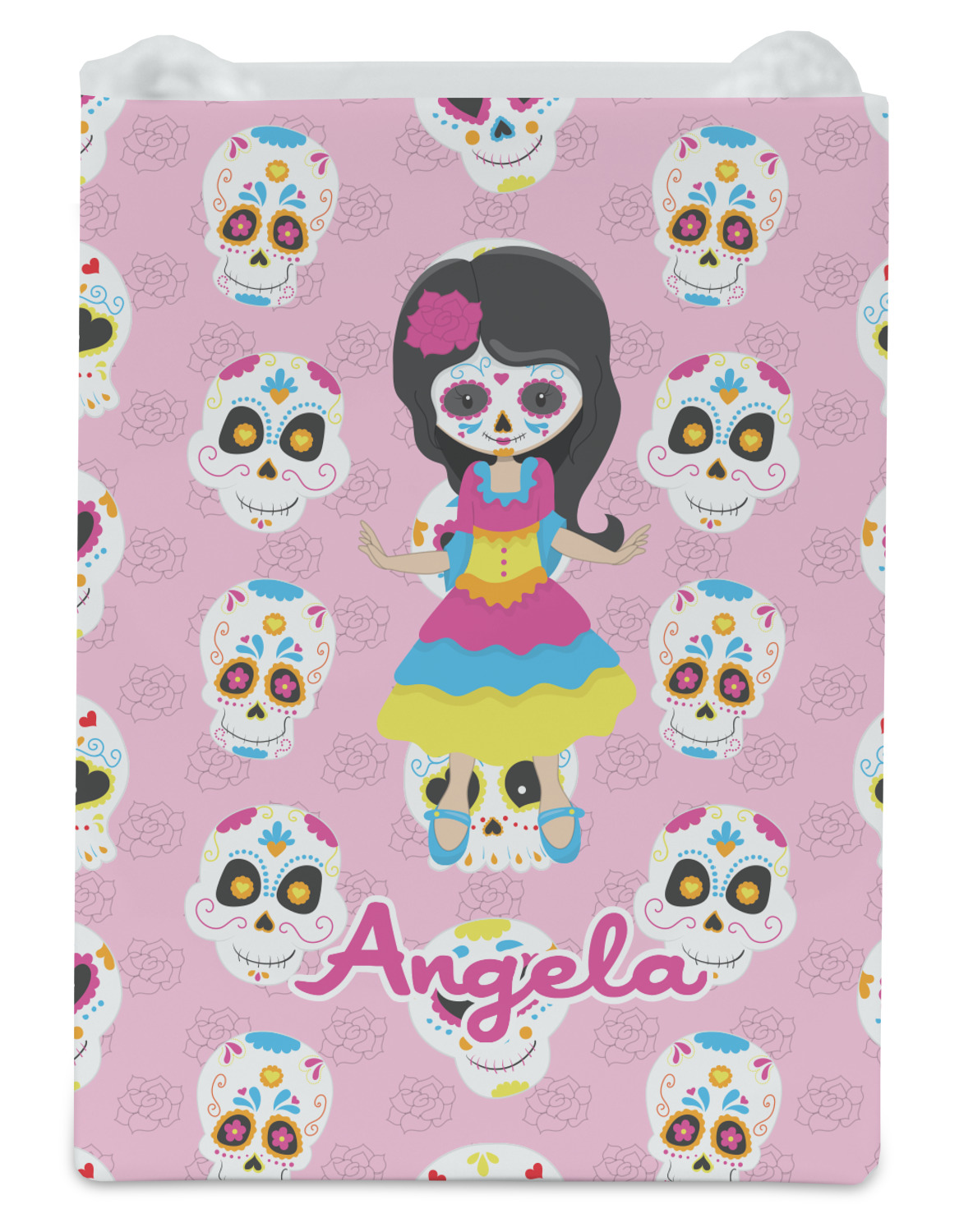 Most sugar skull design are only suitable for adults - not this one! This sugar skulls designs was done especially for kids who love sugar skulls. This is another one of our many layered designs where the background is a coordinating floral pattern; with kid friendly sugar skulls on top. We then topped it off with our girl who has her face painted. For personalization, we added her name to the bottom.