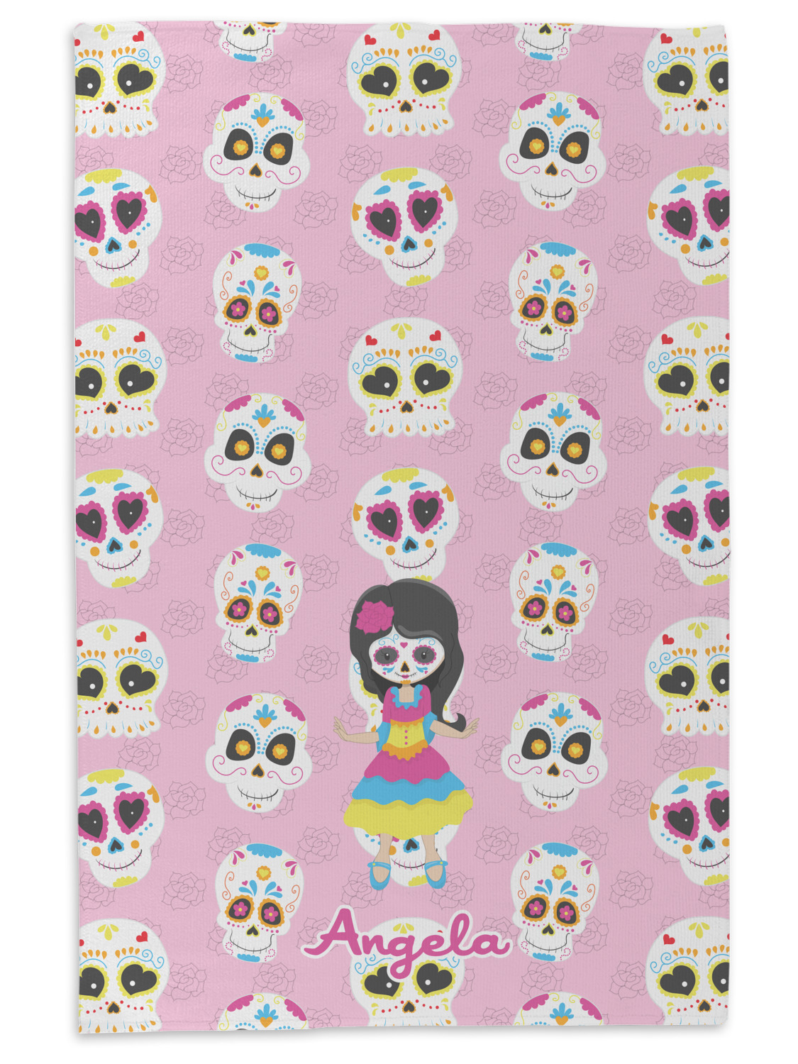 Most sugar skull design are only suitable for adults - not this one! This sugar skulls designs was done especially for kids who love sugar skulls. This is another one of our many layered designs where the background is a coordinating floral pattern; with kid friendly sugar skulls on top. We then topped it off with our girl who has her face painted. For personalization, we added her name to the bottom.
