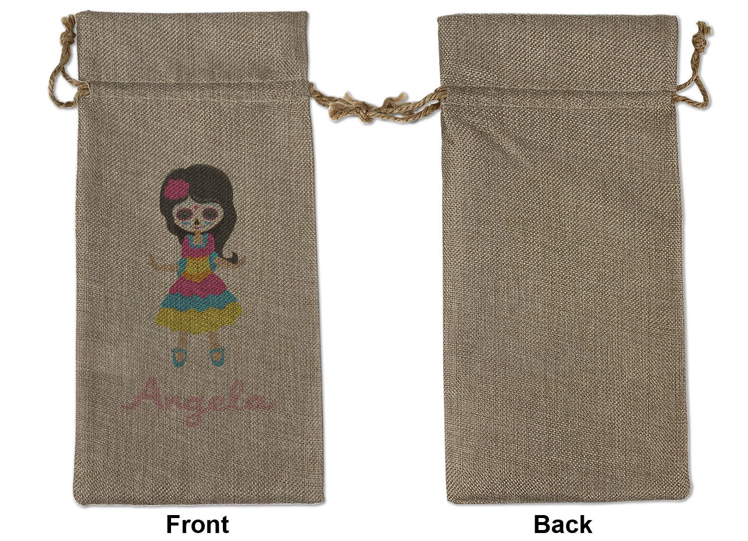 We sell our Burlap Gift Bags in 3 variant sized bags. Made with burlap polyester, each personalized bag can be secured with a twine drawstring pull. Your custom design is available to print on one side or both sides - completely up to you! The sizes of the bags measure approximately 4.5" x 6.5" for the smallest size, 6.5" x 8.0" for the medium size, and 6.5" x 13.5" for the large-sized bag.