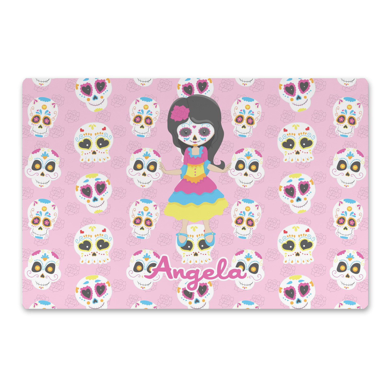 Most sugar skull design are only suitable for adults - not this one! This sugar skulls designs was done especially for kids who love sugar skulls. This is another one of our many layered designs where the background is a coordinating floral pattern; with kid friendly sugar skulls on top. We then topped it off with our girl who has her face painted. For personalization, we added her name to the bottom.