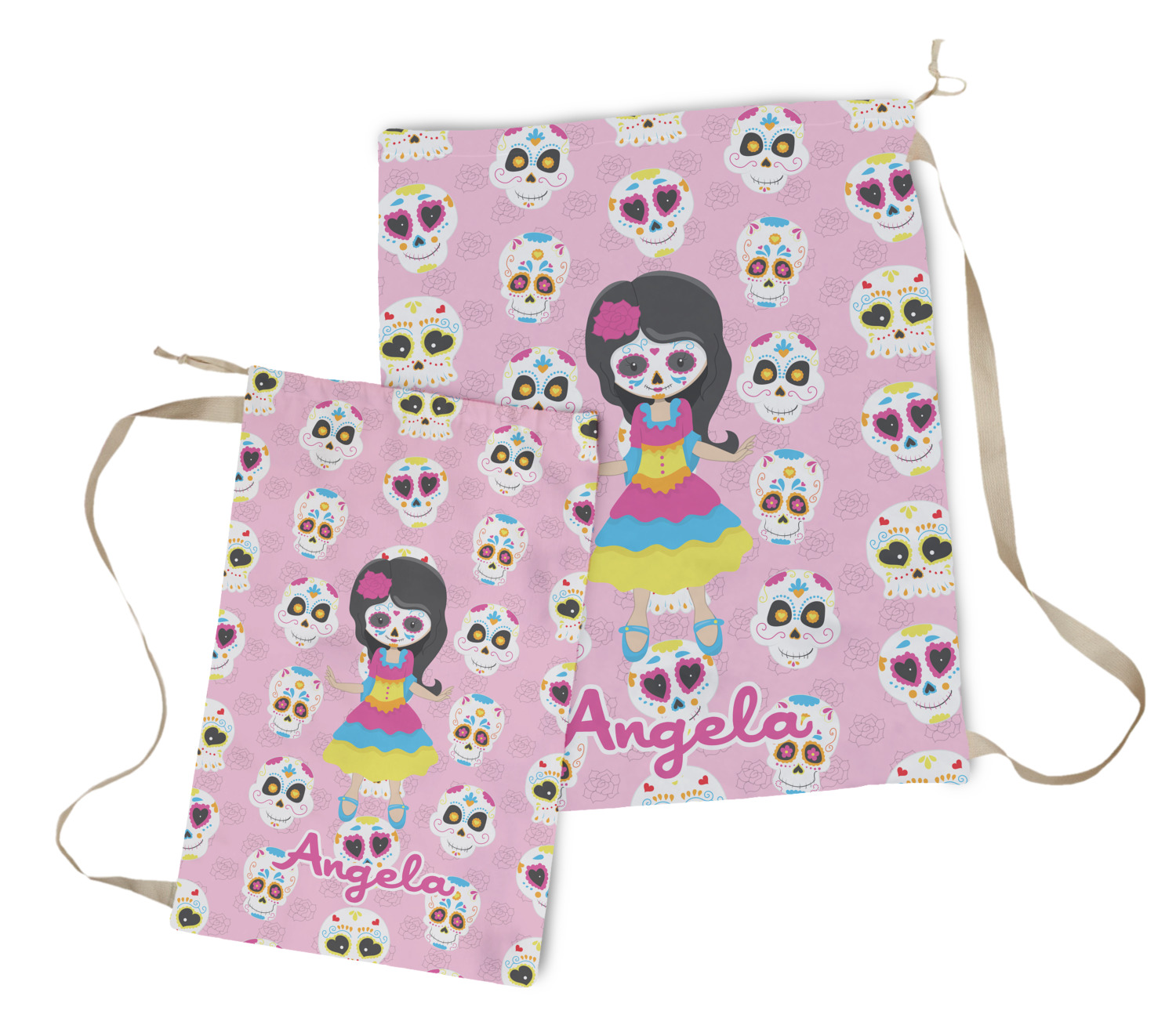 Most sugar skull design are only suitable for adults - not this one! This sugar skulls designs was done especially for kids who love sugar skulls. This is another one of our many layered designs where the background is a coordinating floral pattern; with kid friendly sugar skulls on top. We then topped it off with our girl who has her face painted. For personalization, we added her name to the bottom.