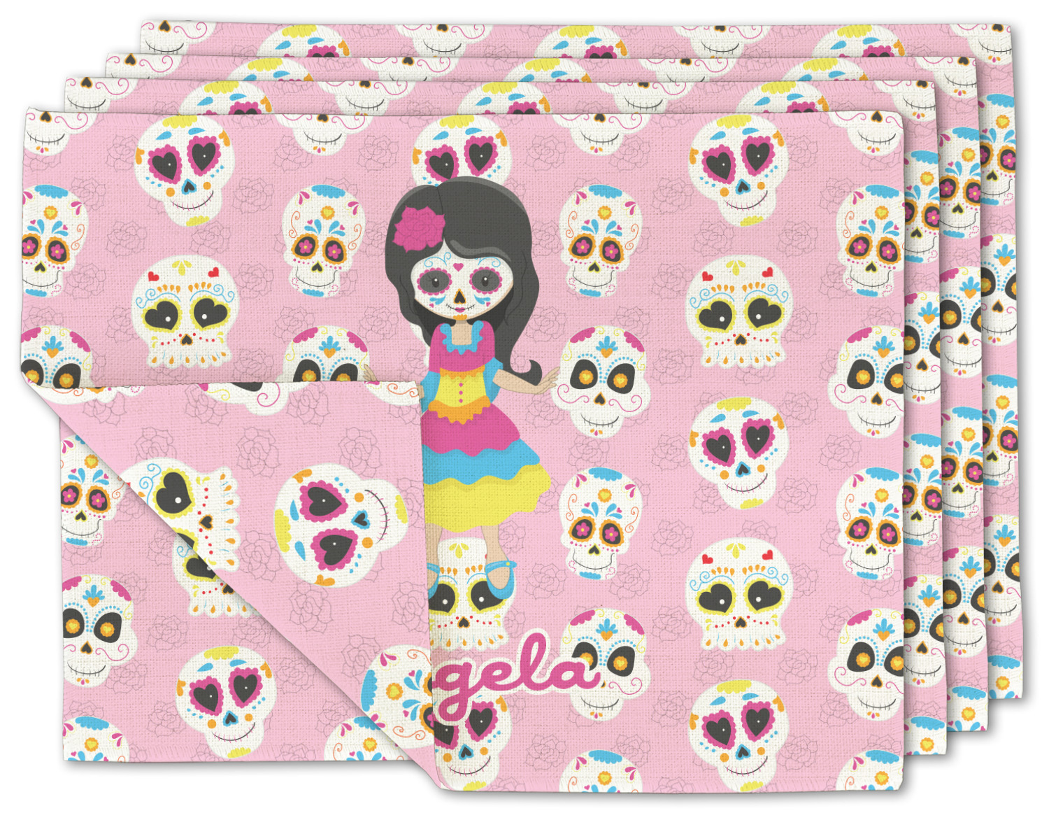 Most sugar skull design are only suitable for adults - not this one! This sugar skulls designs was done especially for kids who love sugar skulls. This is another one of our many layered designs where the background is a coordinating floral pattern; with kid friendly sugar skulls on top. We then topped it off with our girl who has her face painted. For personalization, we added her name to the bottom.