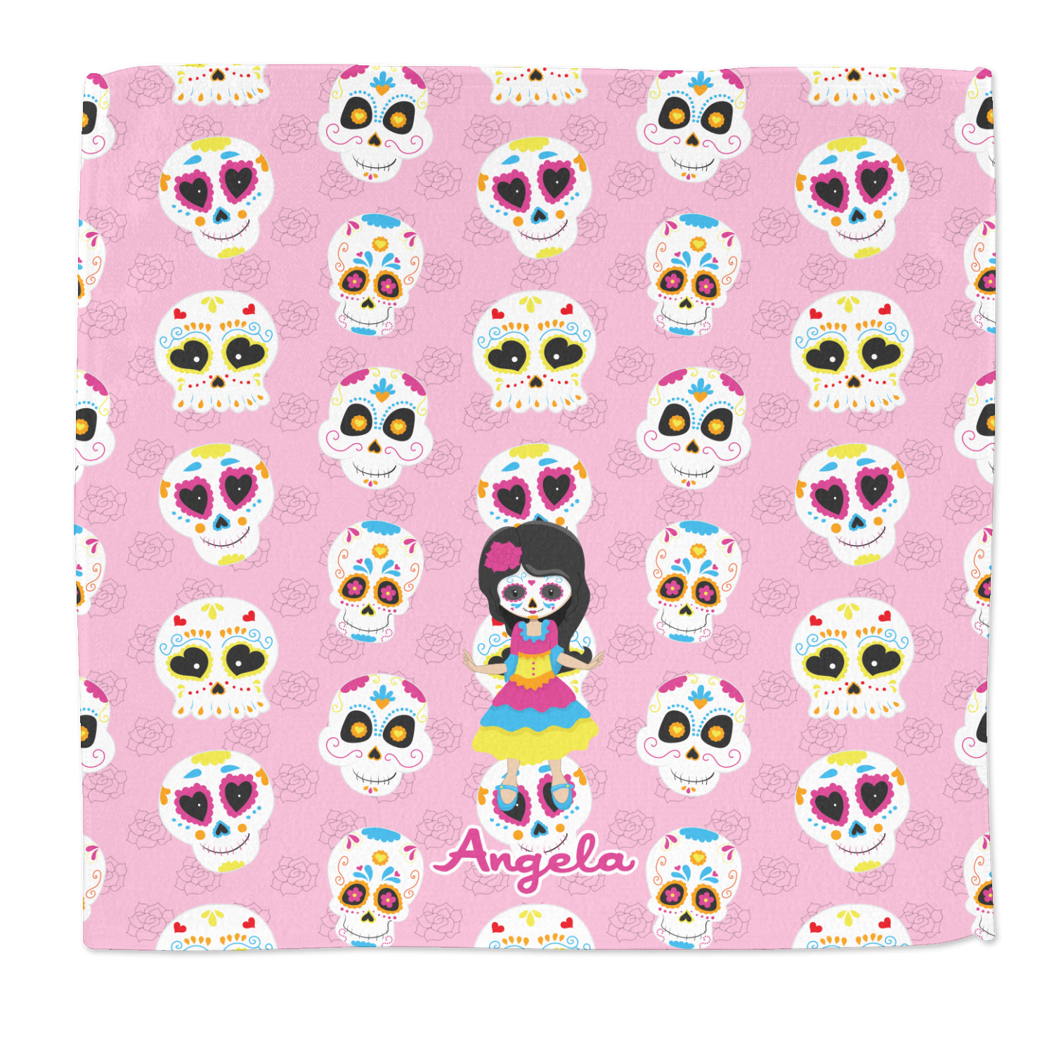 Most sugar skull design are only suitable for adults - not this one! This sugar skulls designs was done especially for kids who love sugar skulls. This is another one of our many layered designs where the background is a coordinating floral pattern; with kid friendly sugar skulls on top. We then topped it off with our girl who has her face painted. For personalization, we added her name to the bottom.