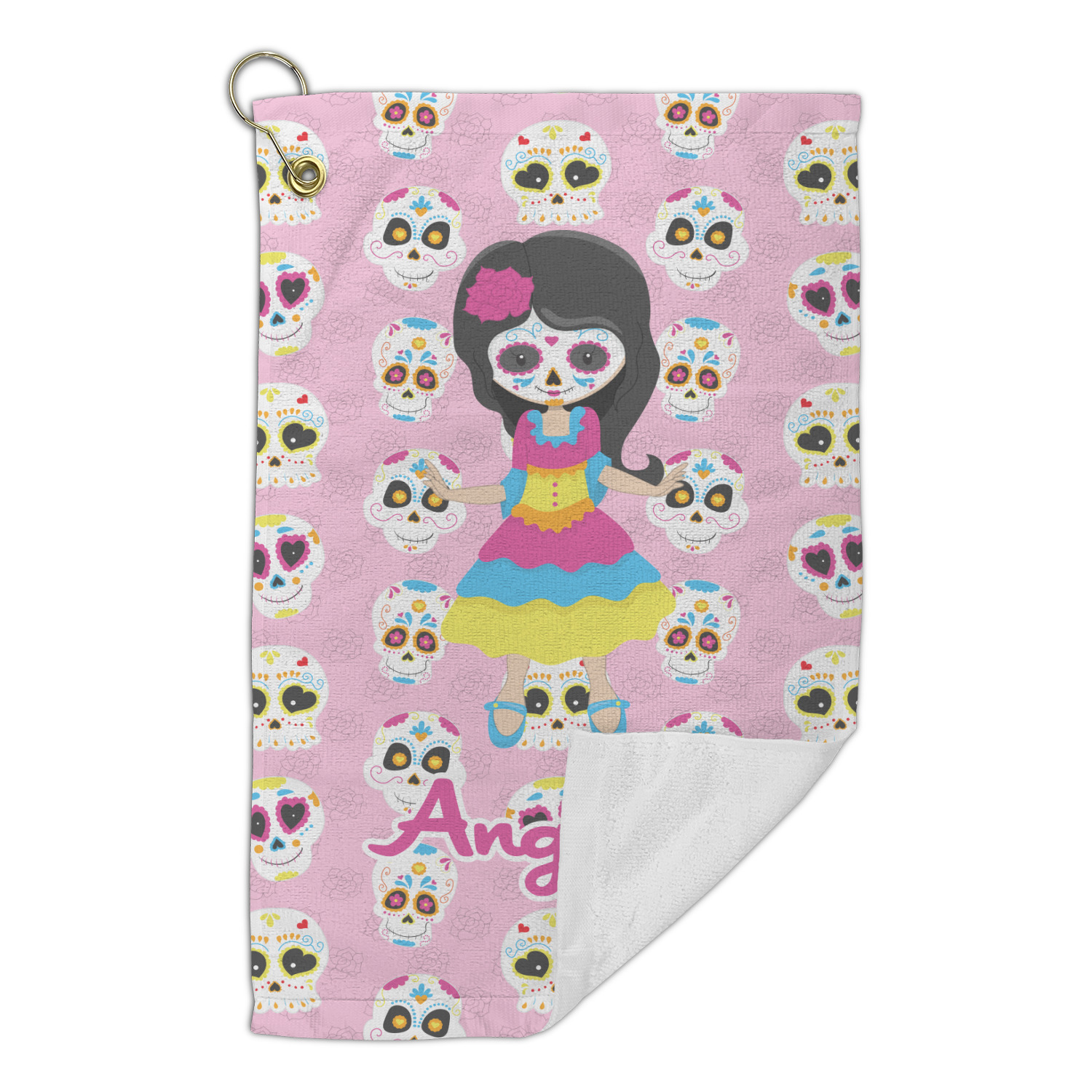 Most sugar skull design are only suitable for adults - not this one! This sugar skulls designs was done especially for kids who love sugar skulls. This is another one of our many layered designs where the background is a coordinating floral pattern; with kid friendly sugar skulls on top. We then topped it off with our girl who has her face painted. For personalization, we added her name to the bottom.