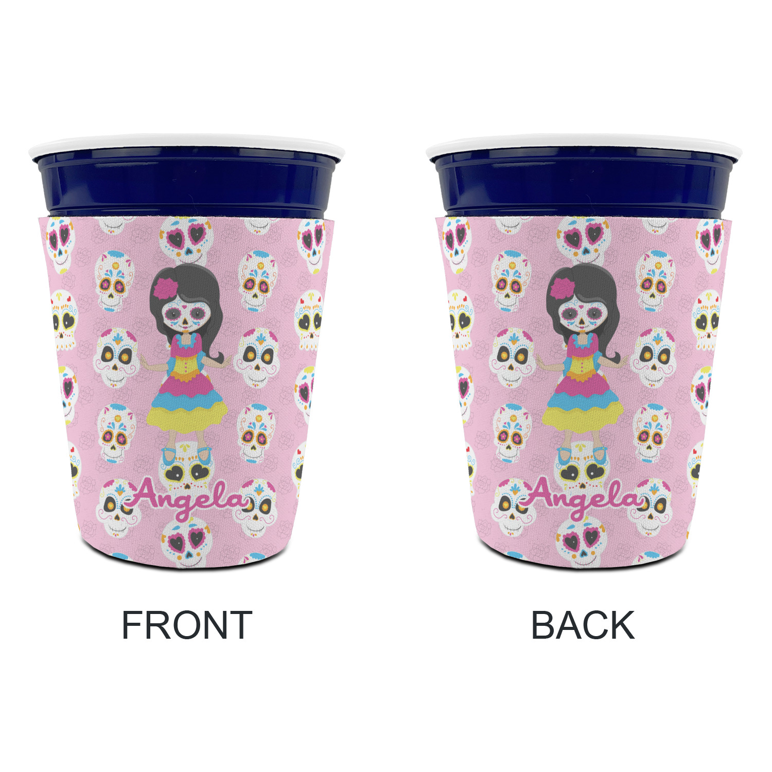 Made from neoprene with a polyester outer fabric and sewn seams, these premium quality party cup sleeves are very durable and will hold up to heavy use. They are available in 2 styles - with a bottom or just a sleeve to go around the outside of the tapered cup. The sleeve covers are about 4" tall and cover about 90% of the classic 16 oz. Solo cup.