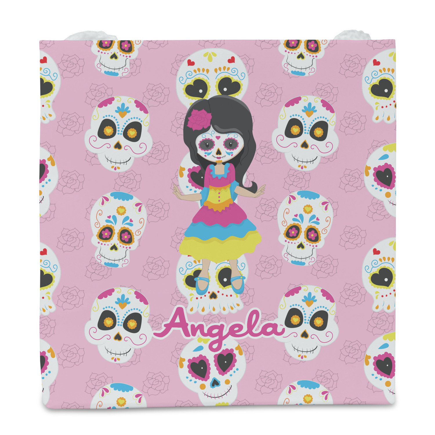 Most sugar skull design are only suitable for adults - not this one! This sugar skulls designs was done especially for kids who love sugar skulls. This is another one of our many layered designs where the background is a coordinating floral pattern; with kid friendly sugar skulls on top. We then topped it off with our girl who has her face painted. For personalization, we added her name to the bottom.