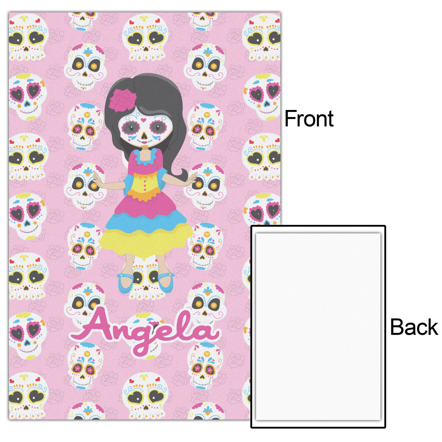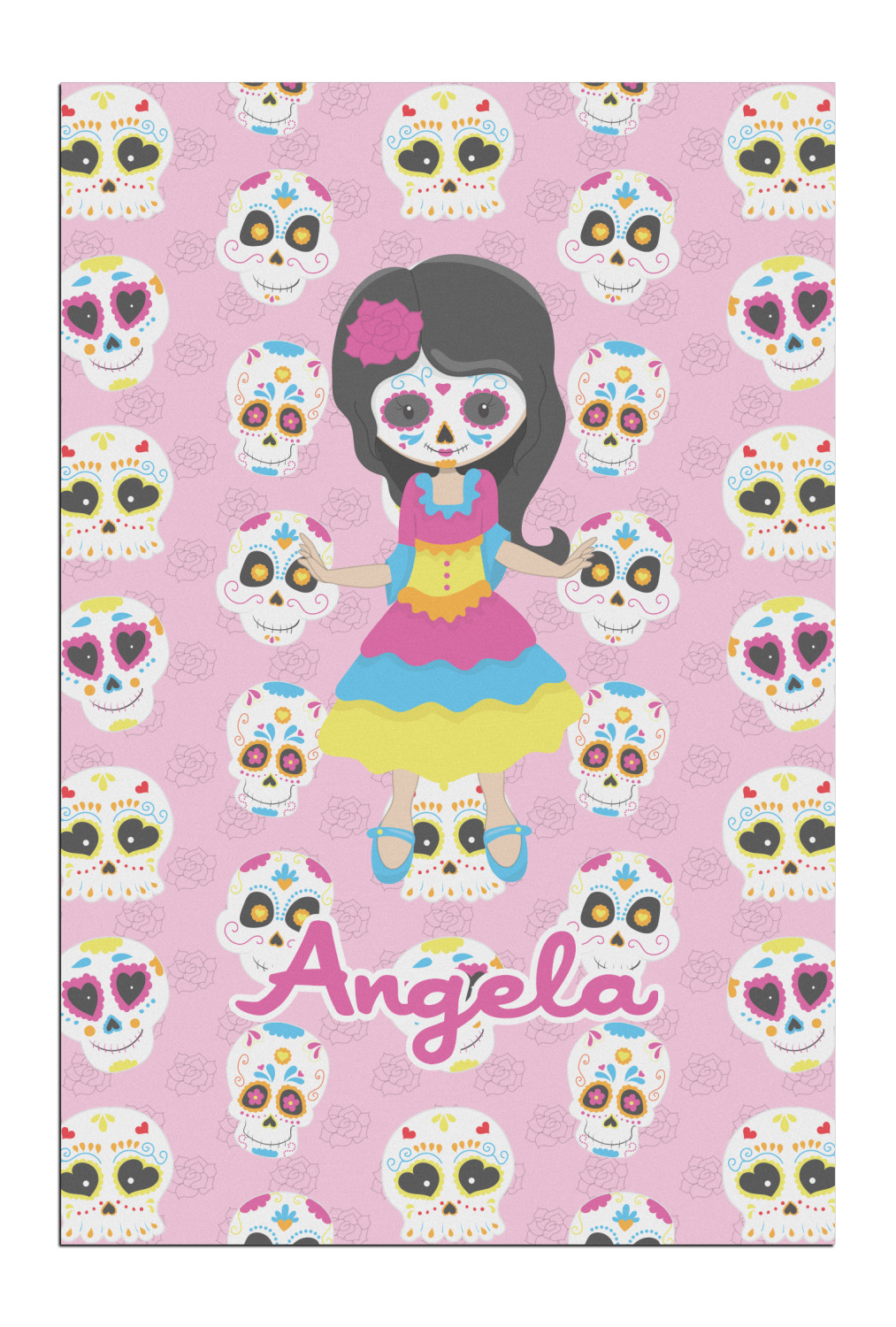 Most sugar skull design are only suitable for adults - not this one! This sugar skulls designs was done especially for kids who love sugar skulls. This is another one of our many layered designs where the background is a coordinating floral pattern; with kid friendly sugar skulls on top. We then topped it off with our girl who has her face painted. For personalization, we added her name to the bottom.