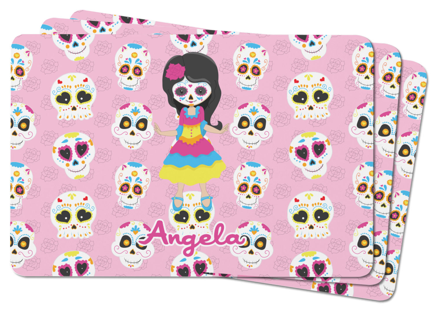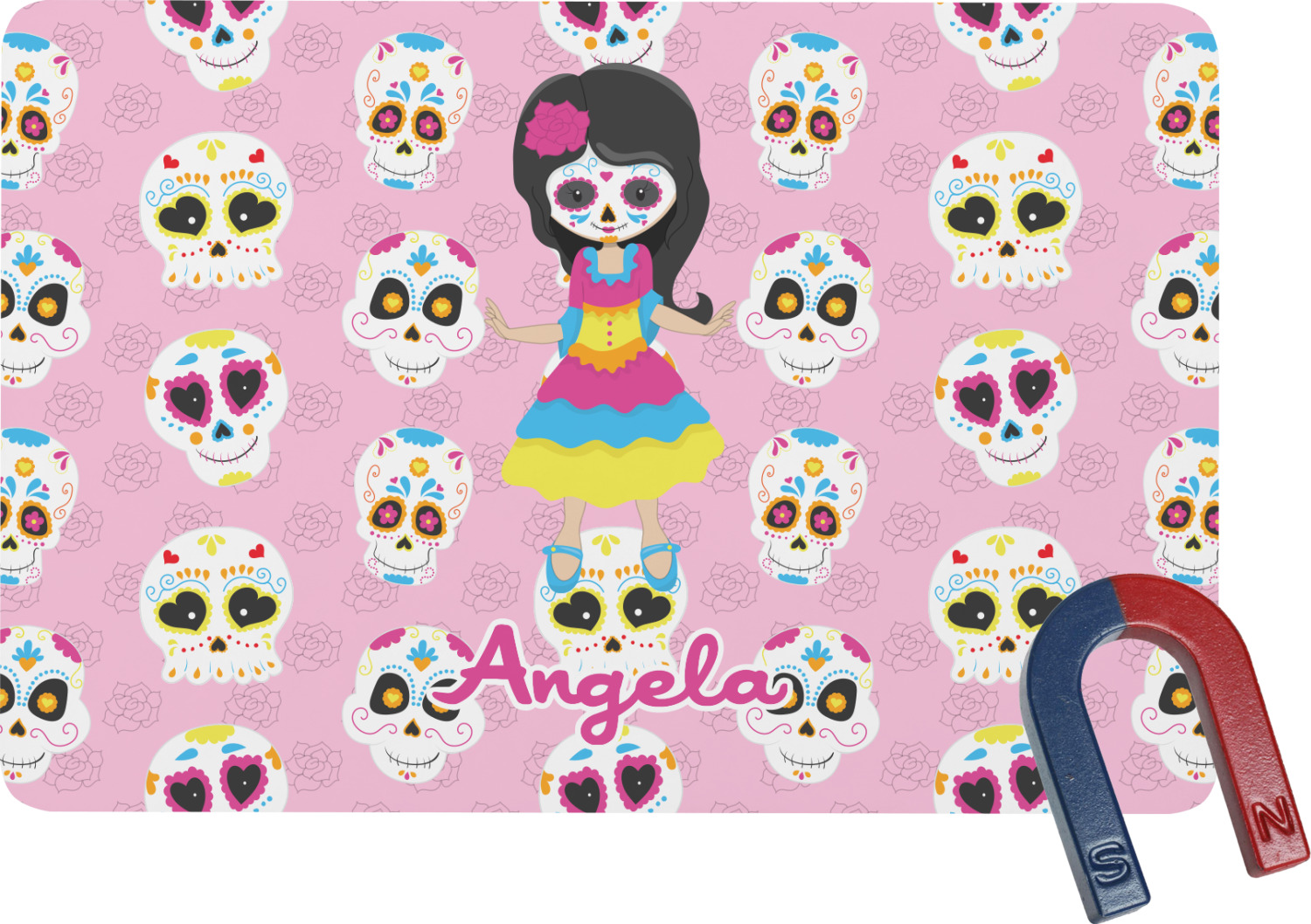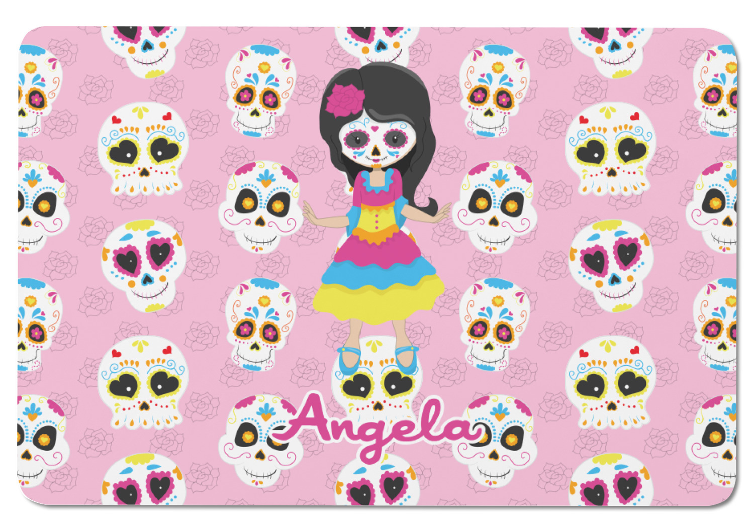 Most sugar skull design are only suitable for adults - not this one! This sugar skulls designs was done especially for kids who love sugar skulls. This is another one of our many layered designs where the background is a coordinating floral pattern; with kid friendly sugar skulls on top. We then topped it off with our girl who has her face painted. For personalization, we added her name to the bottom.