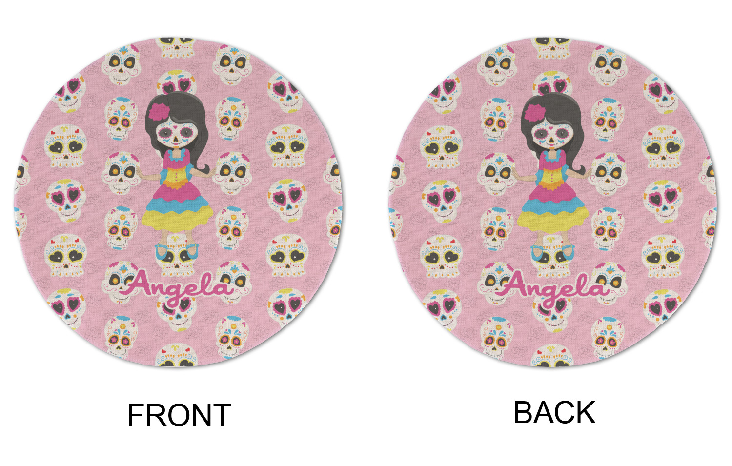 Most sugar skull design are only suitable for adults - not this one! This sugar skulls designs was done especially for kids who love sugar skulls. This is another one of our many layered designs where the background is a coordinating floral pattern; with kid friendly sugar skulls on top. We then topped it off with our girl who has her face painted. For personalization, we added her name to the bottom.