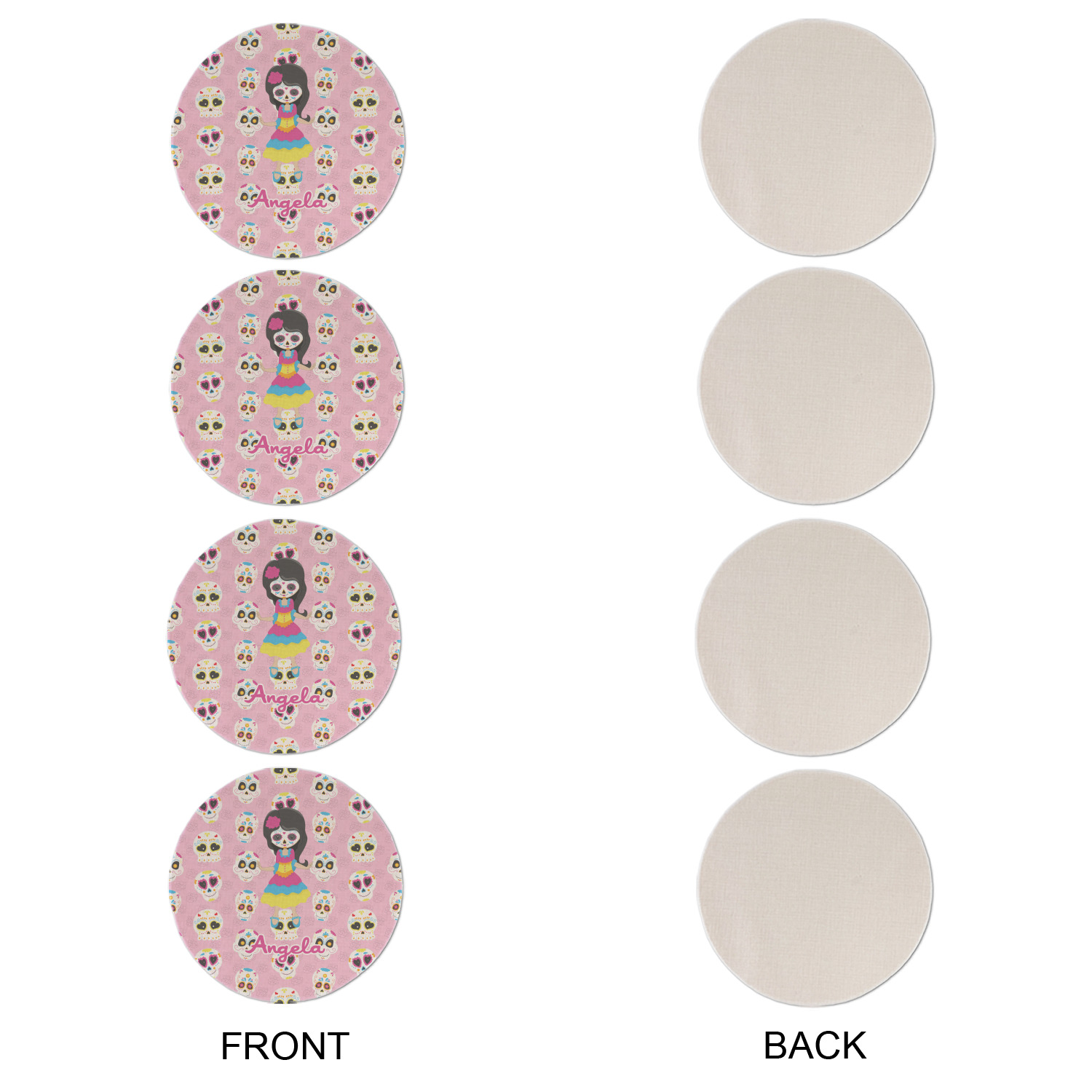 Most sugar skull design are only suitable for adults - not this one! This sugar skulls designs was done especially for kids who love sugar skulls. This is another one of our many layered designs where the background is a coordinating floral pattern; with kid friendly sugar skulls on top. We then topped it off with our girl who has her face painted. For personalization, we added her name to the bottom.