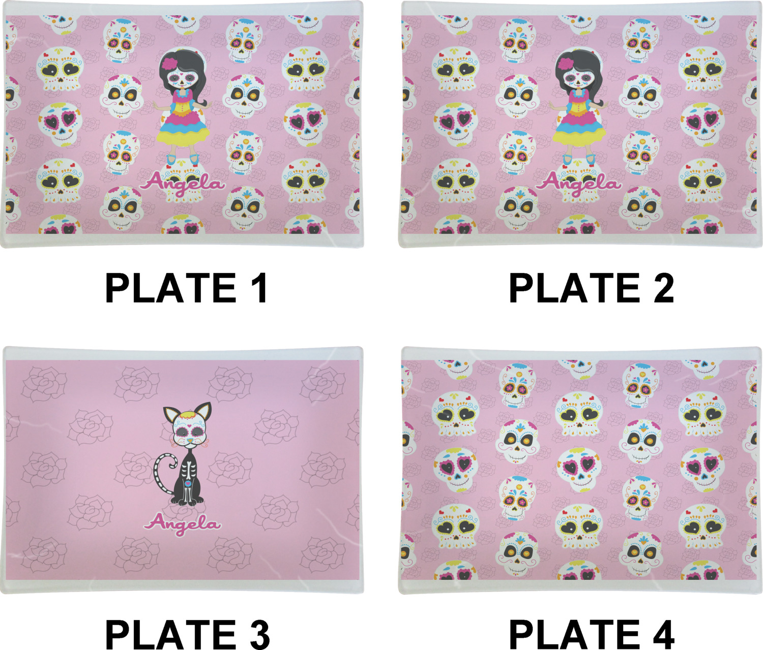 Most sugar skull design are only suitable for adults - not this one! This sugar skulls designs was done especially for kids who love sugar skulls. This is another one of our many layered designs where the background is a coordinating floral pattern; with kid friendly sugar skulls on top. We then topped it off with our girl who has her face painted. For personalization, we added her name to the bottom.
