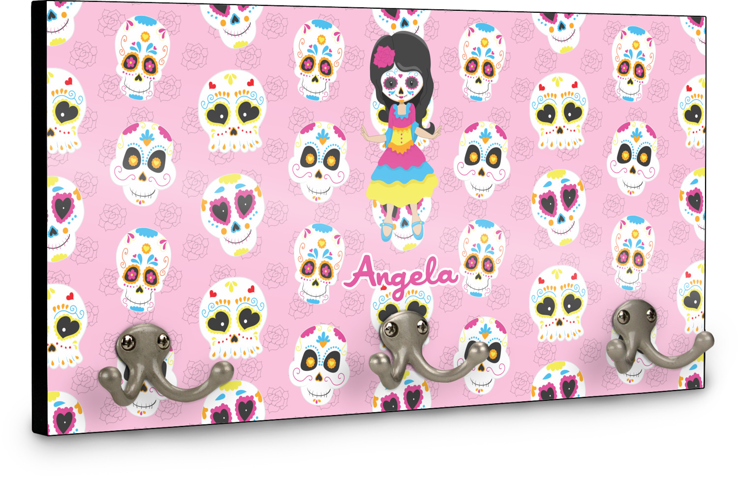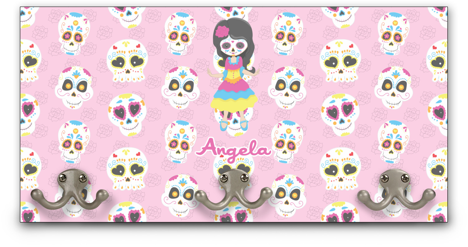 This coat rack is the perfect way to add some personality to your wall or entryway. The board is made of a strong maple that is approximately 16" x 8". The three 2-prong hooks are a sturdy metal that have three screws attaching them to the board. Your design is printed right onto the front of the board while the back and sides are a simple black.