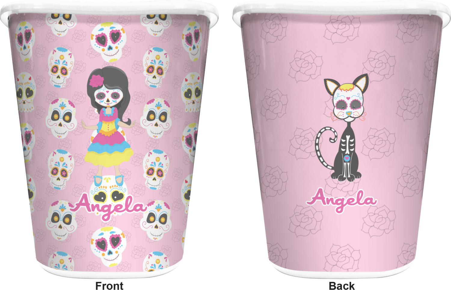 You can choose to purchase these decorative wastebaskets in either a white or a black color that will show on the base and the upper rim. Your customization is printed on a high-gloss, fine-quality vinyl adhesive, and you can choose to either have this adhesive applied to one side only or to both sides. As such, this plastic wastebasket can be single-sided or double-sided, depending on your creative vision. Your customization is printed using durable inks, making the design waterproof and resistant to fading over time.