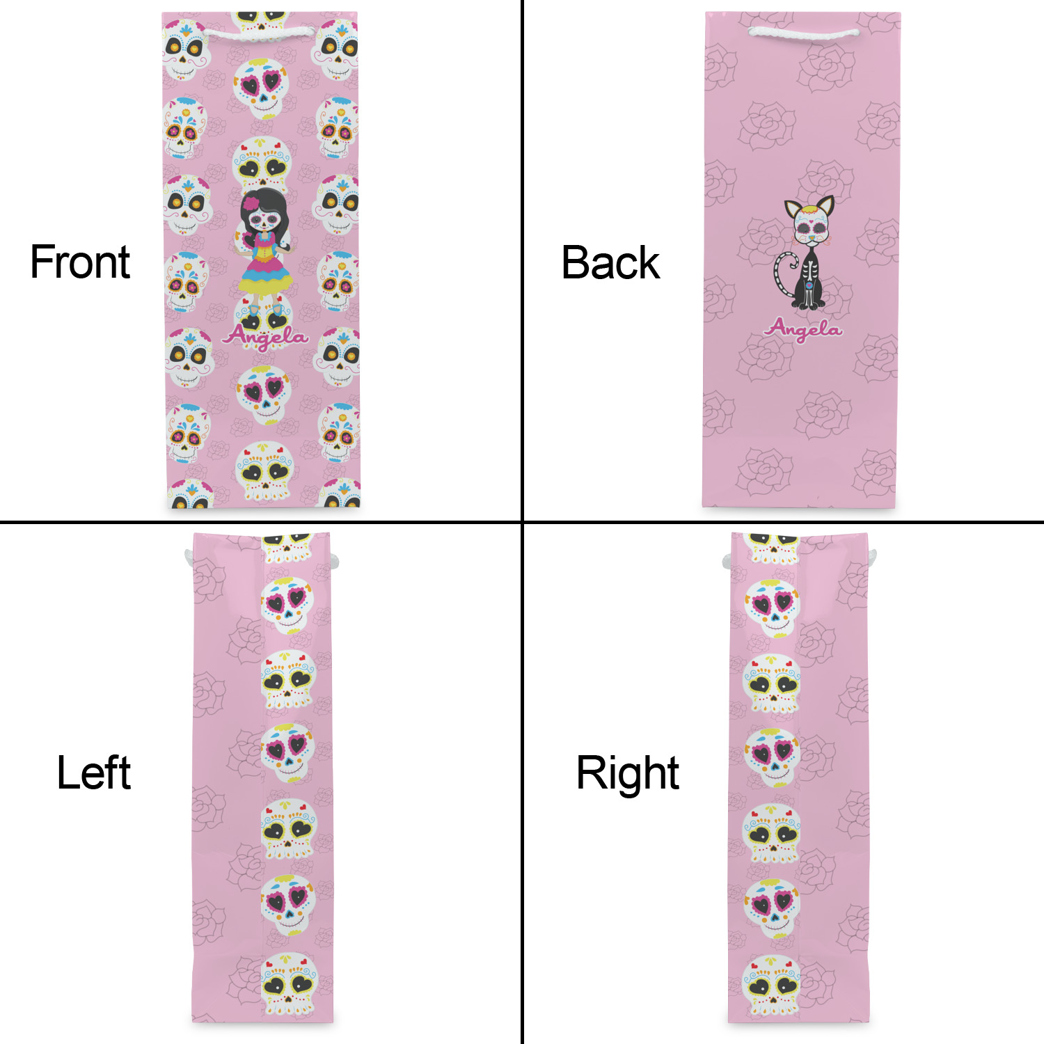 Our wine bags are printed on premium paper. The bags are then cut, scored and folded. The handles and cardstock base it attached. These custom wine bags are printed and made in the USA.
