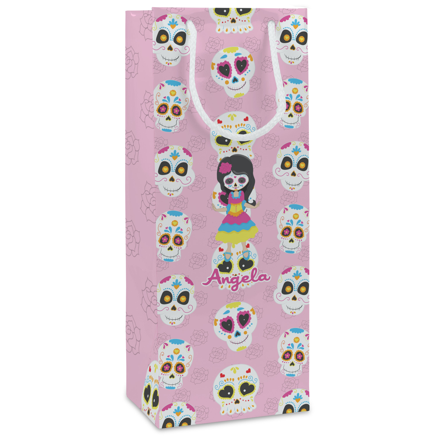 Most sugar skull design are only suitable for adults - not this one! This sugar skulls designs was done especially for kids who love sugar skulls. This is another one of our many layered designs where the background is a coordinating floral pattern; with kid friendly sugar skulls on top. We then topped it off with our girl who has her face painted. For personalization, we added her name to the bottom.