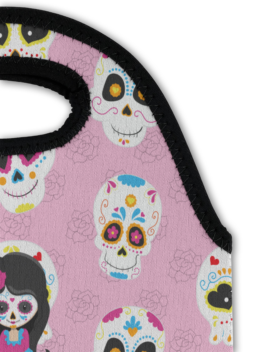 Most sugar skull design are only suitable for adults - not this one! This sugar skulls designs was done especially for kids who love sugar skulls. This is another one of our many layered designs where the background is a coordinating floral pattern; with kid friendly sugar skulls on top. We then topped it off with our girl who has her face painted. For personalization, we added her name to the bottom.